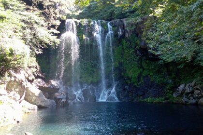 天地淵滝 西帰浦の中央ロータリーあたりでバスを降 …