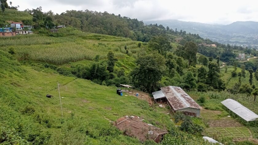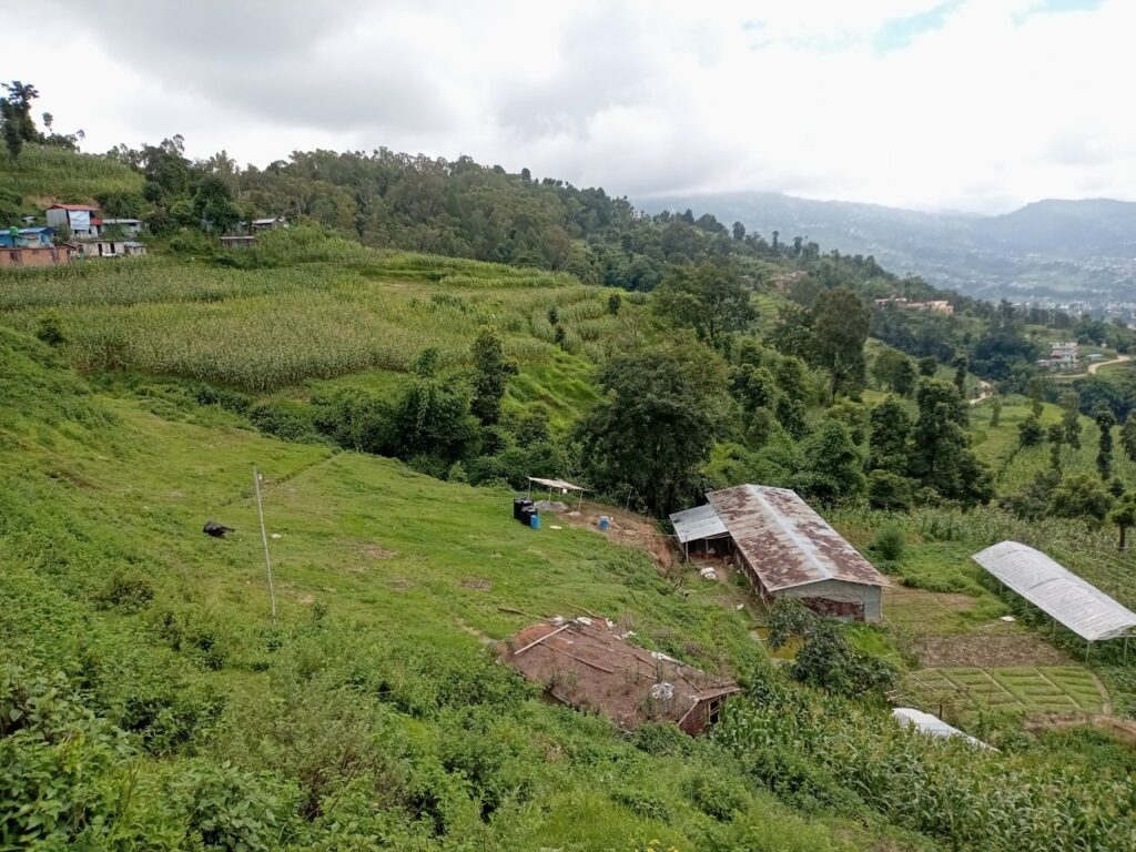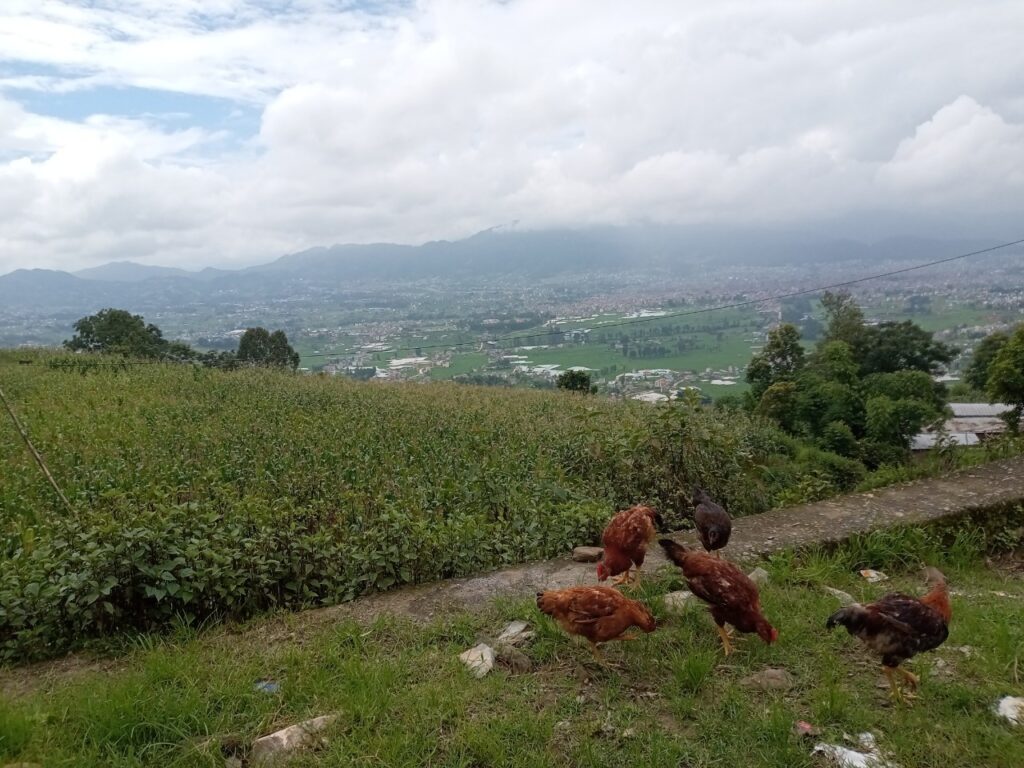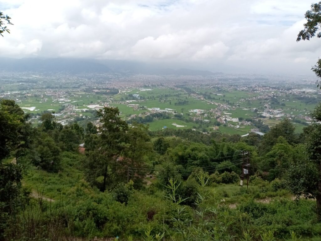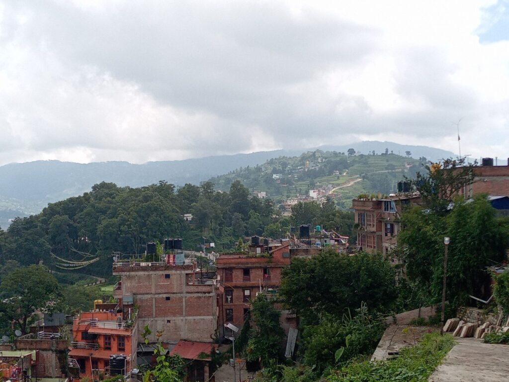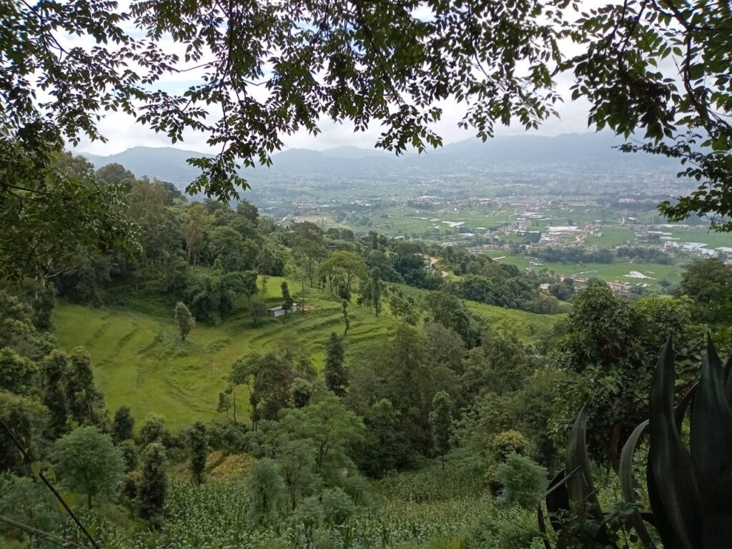 道中は、バクタプルの街並みを見下ろし、農村の暮らしを近くに感じることができます。雲もだいぶなくなり良い景色が広がっていました。