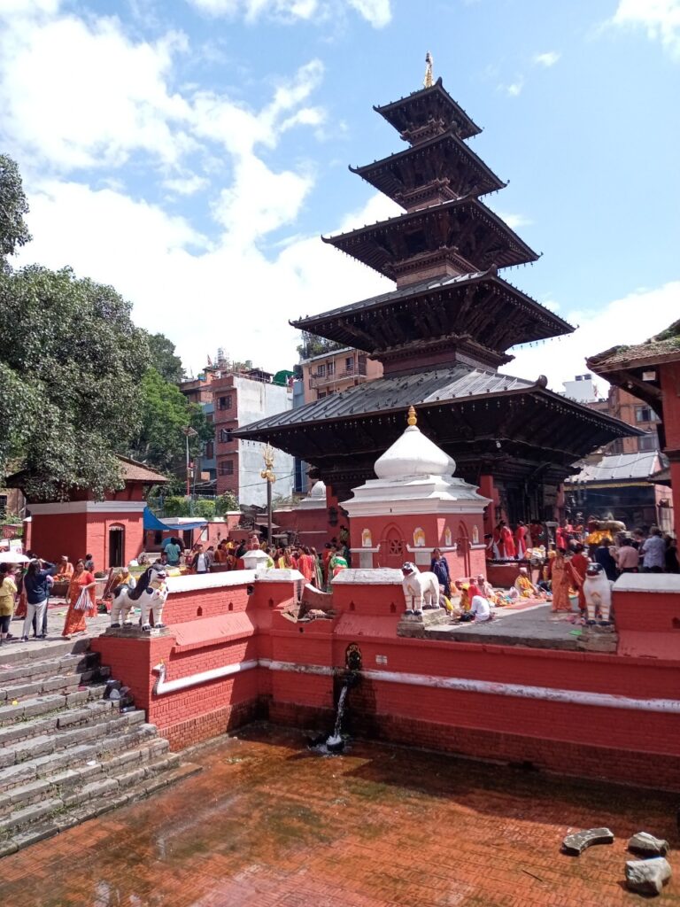 次にパタン最古の寺院であるクンベシュワール寺院へ。五重塔をもつ寺院で、水場で身を清める人がいるなど、たくさんの人がいました。