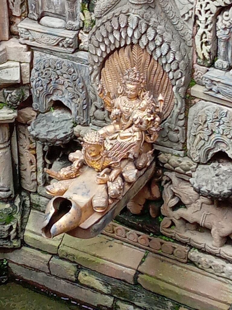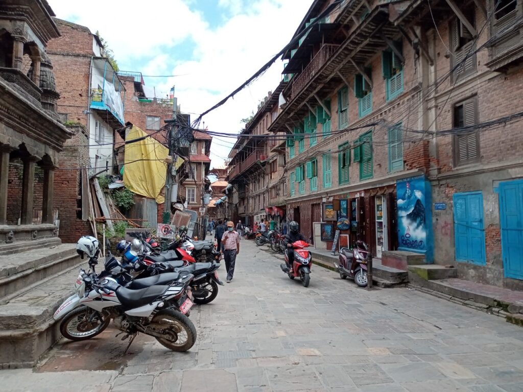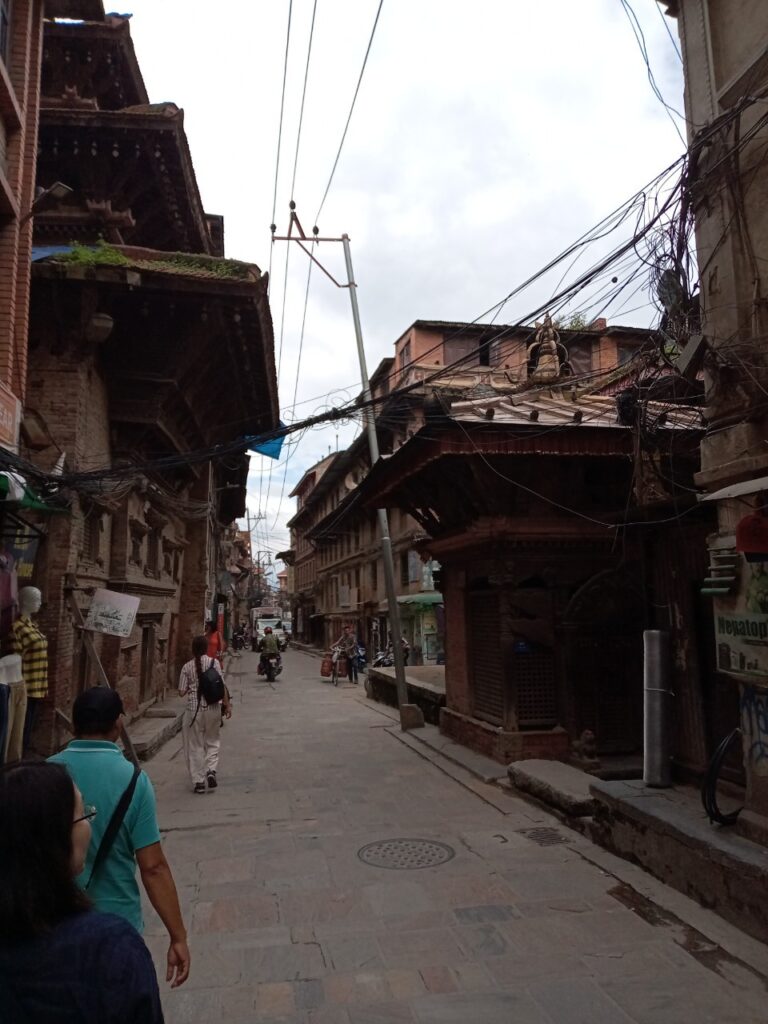 昼食の後は、パタンへ。パタンは、カトマンズの南側に位置し、マッラ3王国があった時代に首都として栄えた古都で世界遺産に登録されています。パタン・ゲートの手前で車を降り、路地を散策しながら行きます。