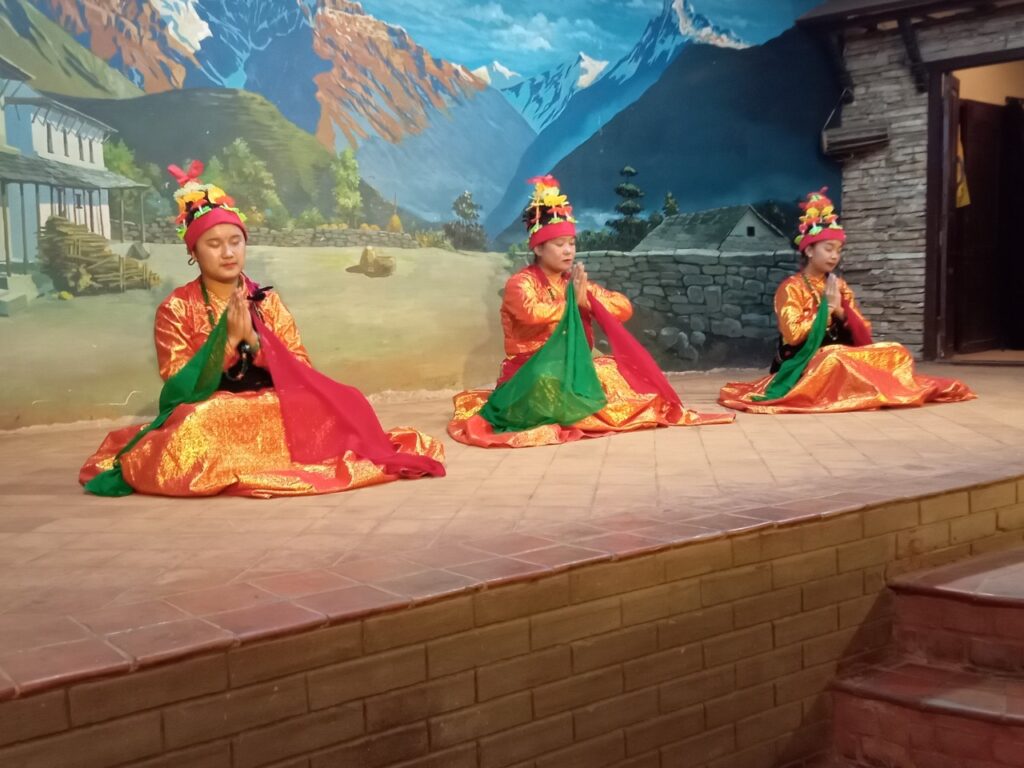 夕食は、伝統舞踊を見ながらネパール料理をいただきました。