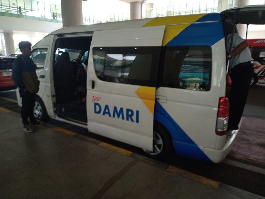 ただ、周りを見渡すと、左ではなくほぼ真正面のあたりにDAMRIの表示がある車を発見。近くまで行くと、職員がいたので「ボロブドゥールバスターミナル」と告げると、乗る車に案内してくれました。運賃は100000ルピア(860円くらい)で、カード払いオッケーでした。