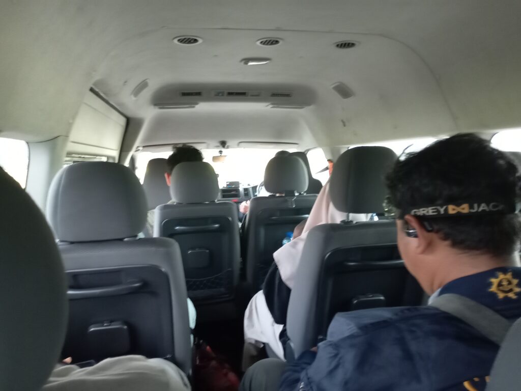 バスといってもワゴン車です。事前情報だと、人がある程度いないと出発しない、予定よりも遅く出発するということでしたが、自分が乗ると満員だったので定刻の5分くらい前に出発しました。待ちがなく良かったですが、結果ギリギリです。