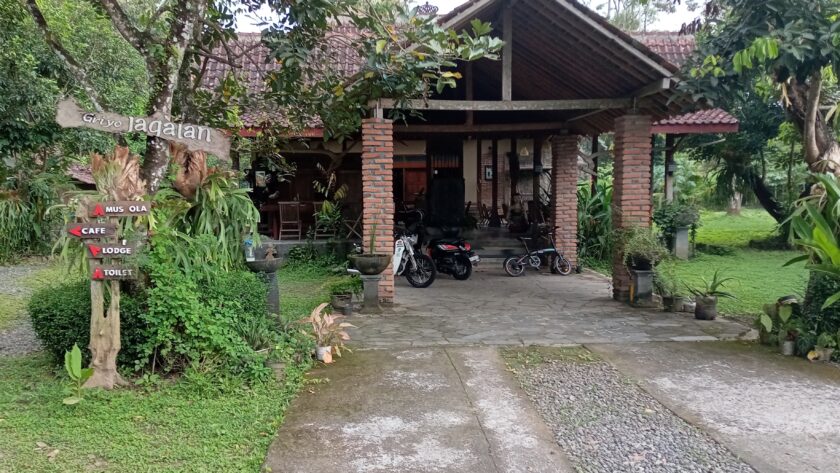 歩いて10分ほど、遺跡公園からはすぐ近くのグリヨ・ジャガランというところが今回の宿泊場所です。古民家のようなたたずまいで、部屋はシンプルですが、エアコンやシャワーもきちんとしていますし、清掃もかなり行き届いている感じです。