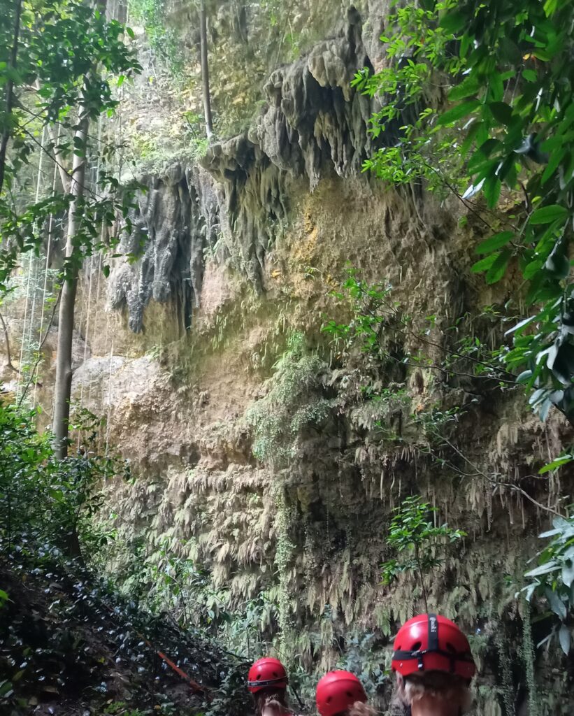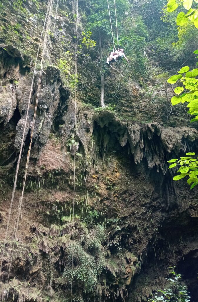 吊られた瞬間はなんとも言えない感覚。高所恐怖症の人は、絶対無理です。しかし、巨大な穴の谷底に降りた時には、冒険心が一気に溢れてきます。