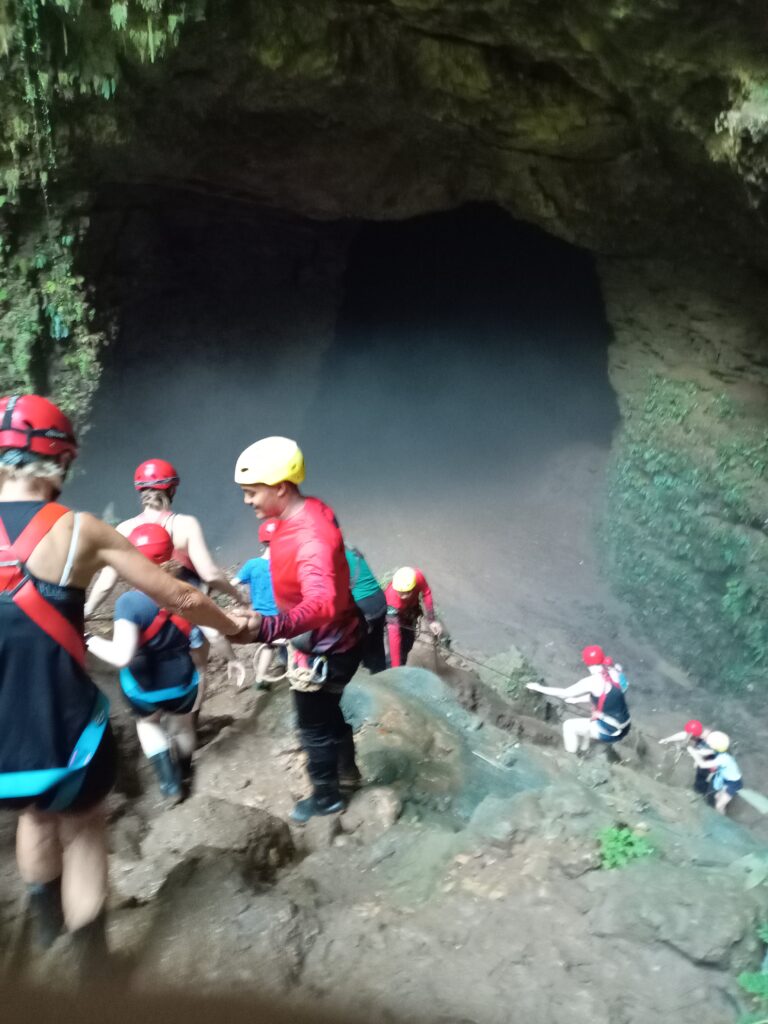 谷底に下りたら、さらに下って洞窟に入ります。グチャグチャ、ドロドロなので何度も足を取られて転びそうになります。結局50m以上、下っていくことになります。