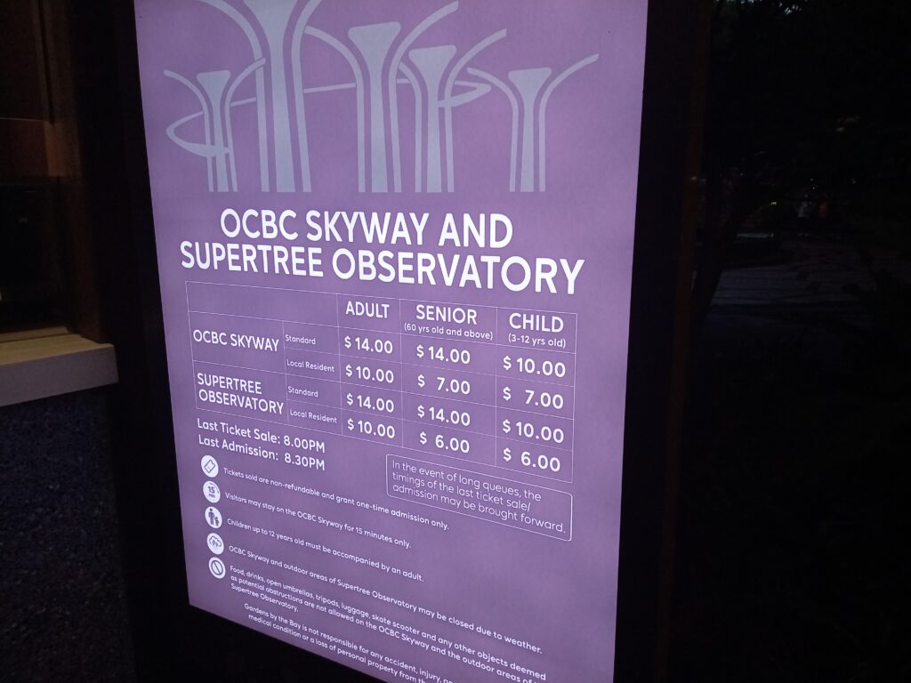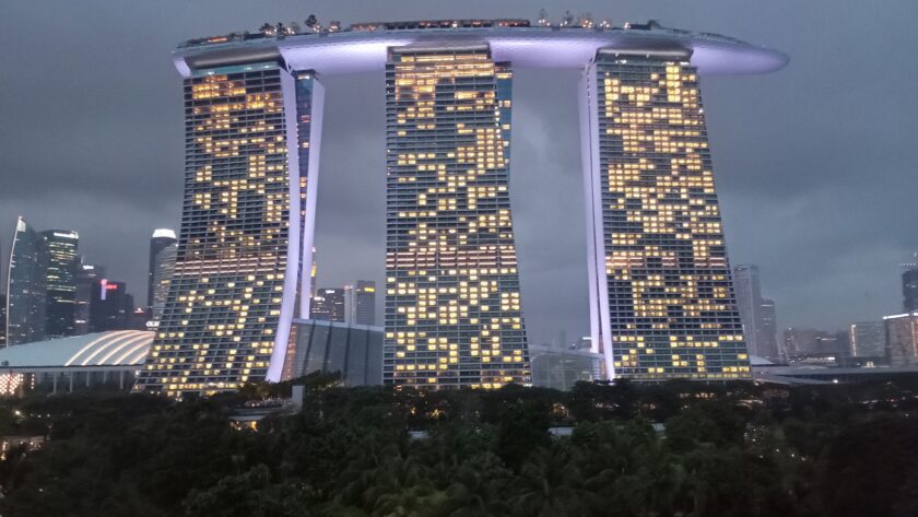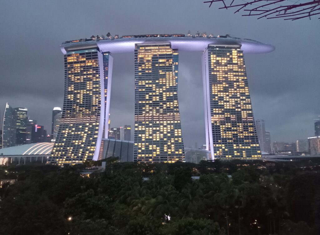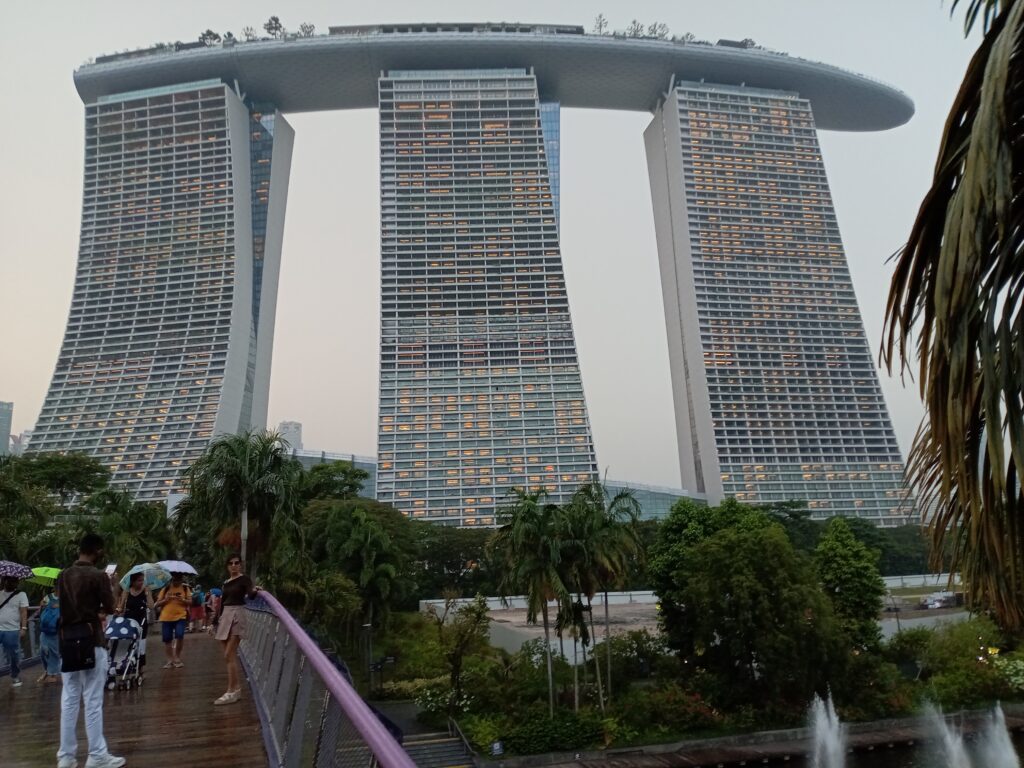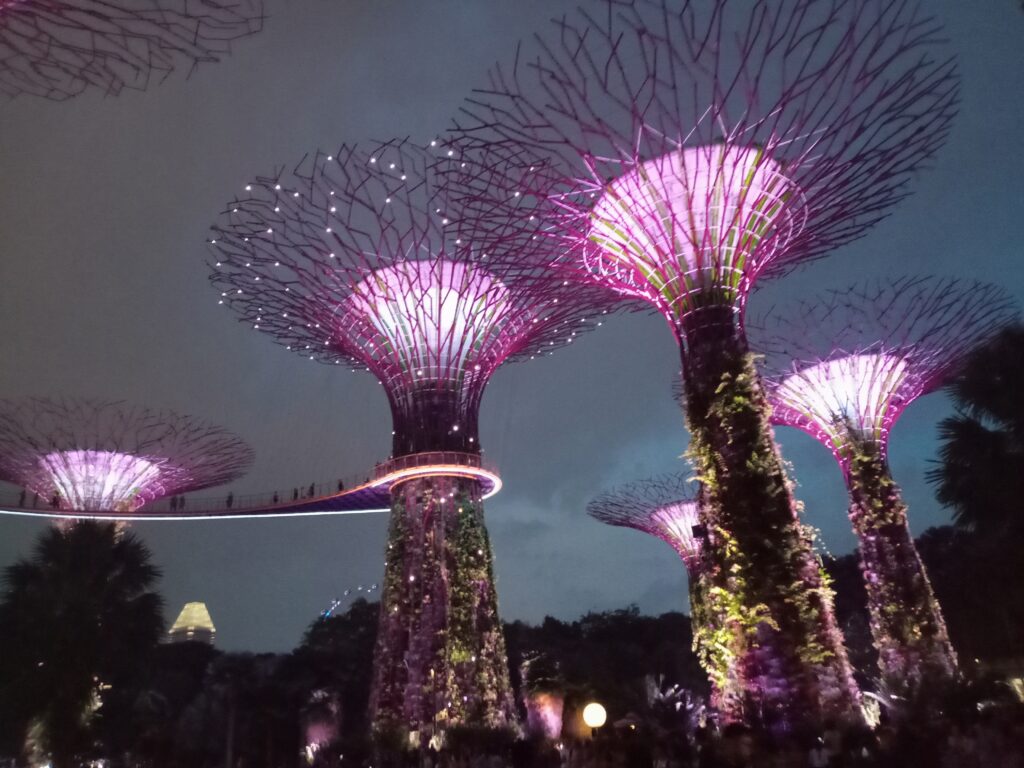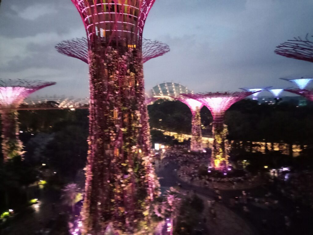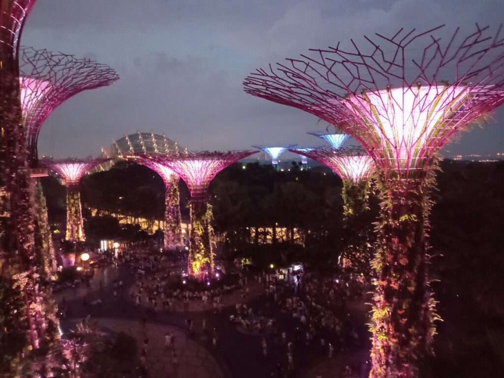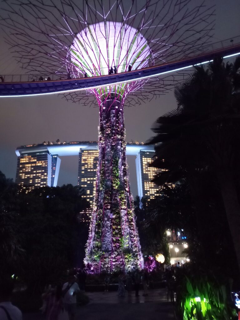一応、歩道橋にいる時間は15分とされていますが、厳密に管理しているようではないです。ライトアップされ、マリーナベイ・サンズも含めて、また違った雰囲気を醸し出しています。