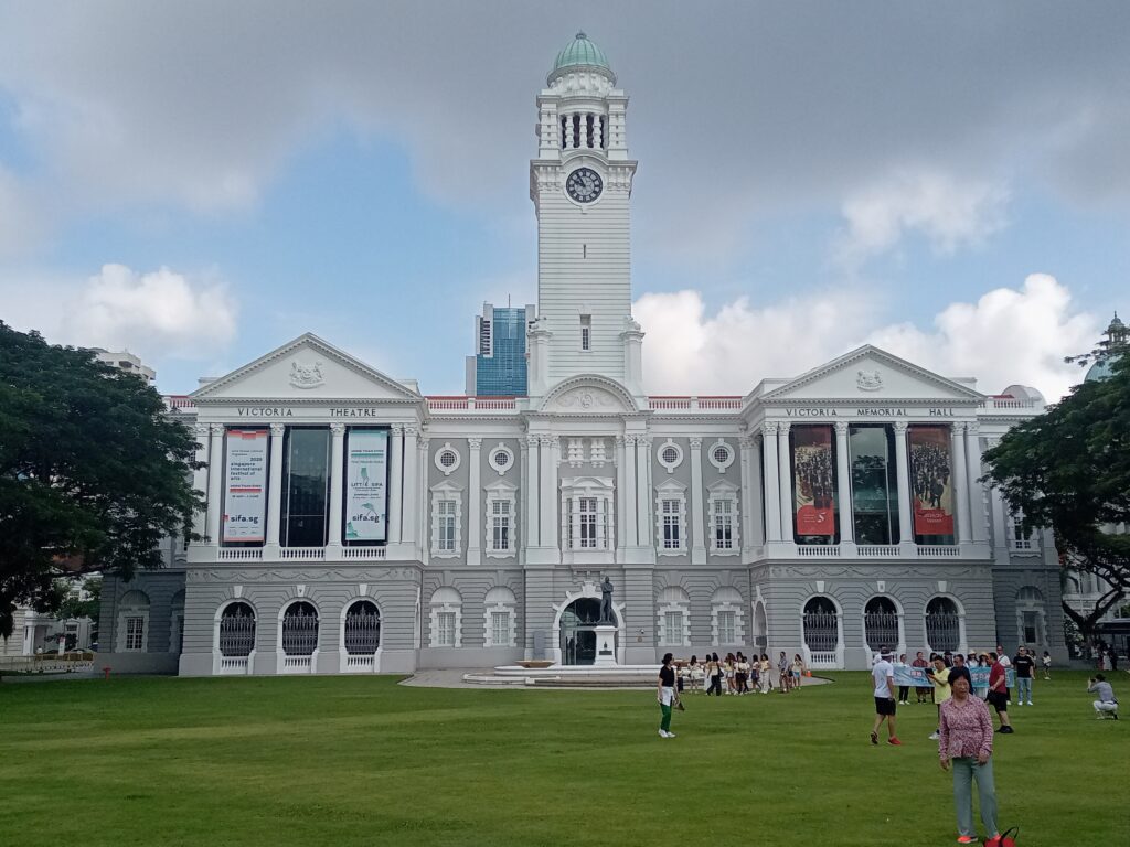 公園を後にして、近くのアンダーソン橋を渡ったところに、ビクトリア・シアター&コンサートホールがあるので、外観だけ撮影します。この辺に1819年に上陸したラッフルズの像が2つあることを知らず、写しそびれました……。