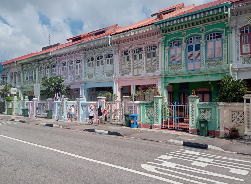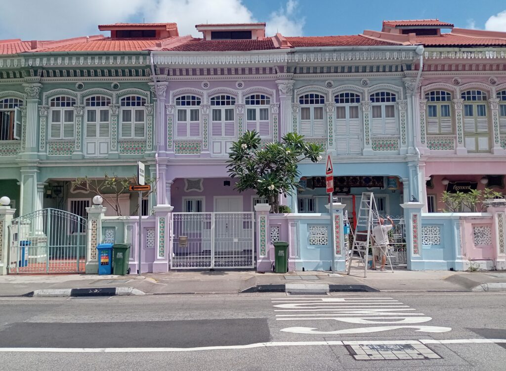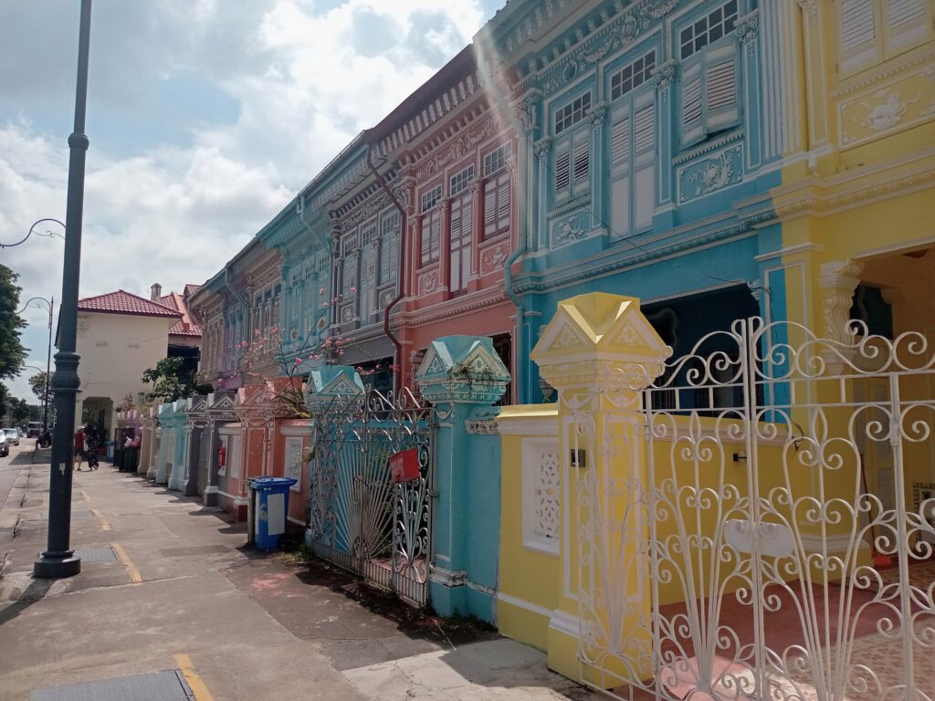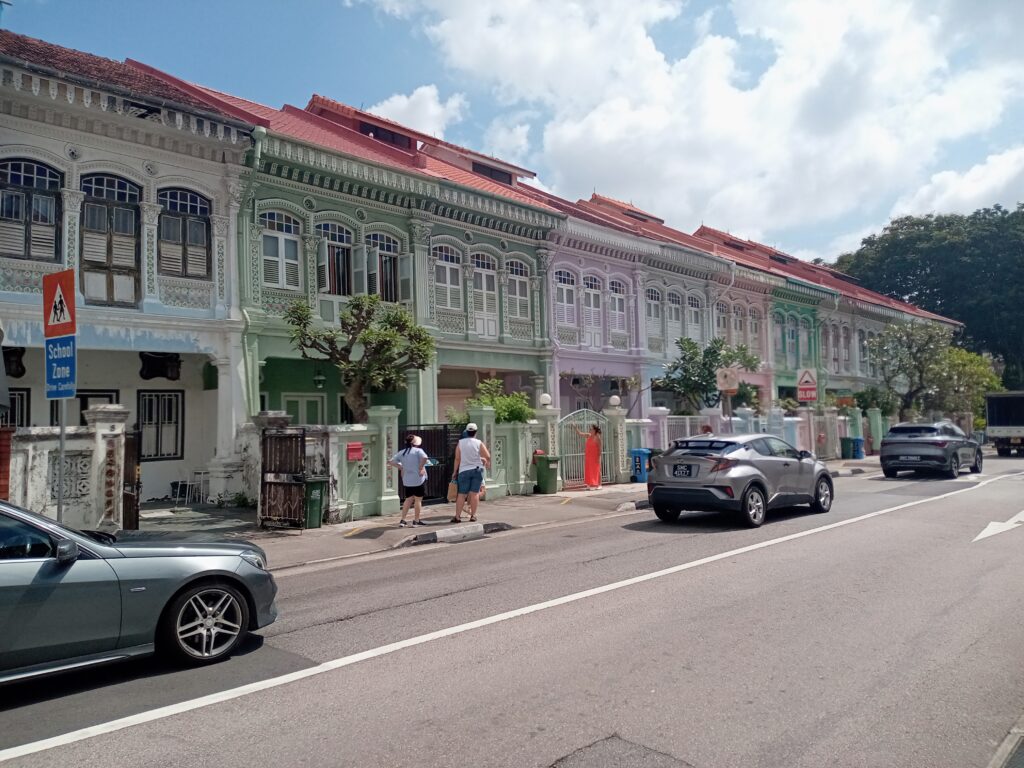 そして、近くのラッフルズ・プレイス駅から、MRTを乗り継いでマリン・パレード駅へ。ここから、10分くらい歩いたところに、カトンと呼ばれるエリアがあり、プラカナン文化が色づく家並みが見られるクーン・セン・ロードがあります。近くには、ショップやレストランがあり、中心部とは異なる雰囲気の街並みが広がっています。