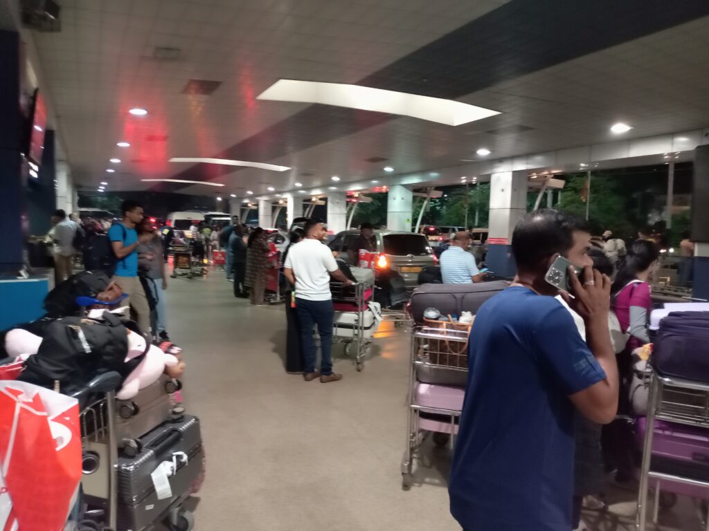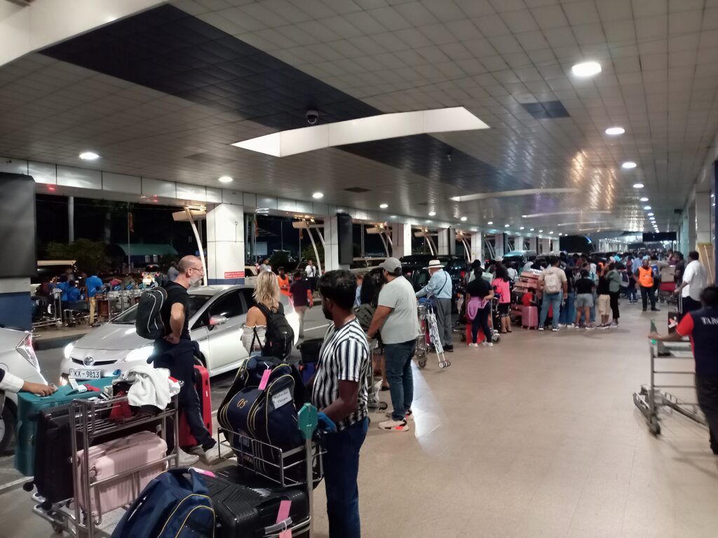 3カ国目の到着地は、スリランカのコロンボ(バンダーラナーヤカ)国際空港です。到着時刻は、23:35と遅い時間にも関わらず、空港にはたくさんの人がいました。