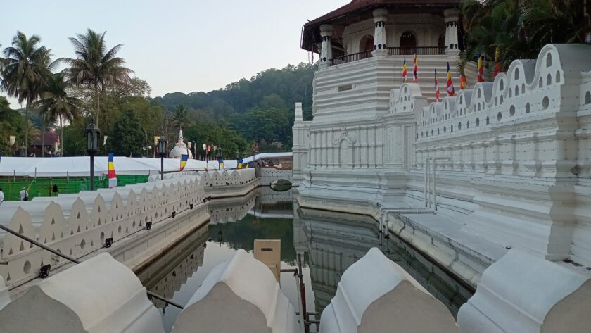 この日は早朝から仏歯寺へ。ここは、スリランカを代表する仏教寺院です。寺院内に奉納されている仏歯は、紀元前543年にインドで仏陀を火葬した際にやっとに手に入れたものと言われているそうです。スリランカでは、仏歯は王権者の象徴で、仏歯のあるところに都の置かれる場所とされてきたようです。