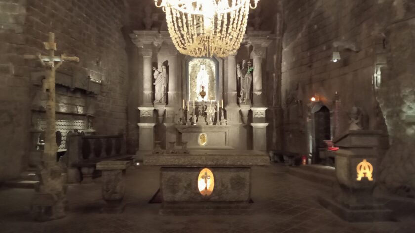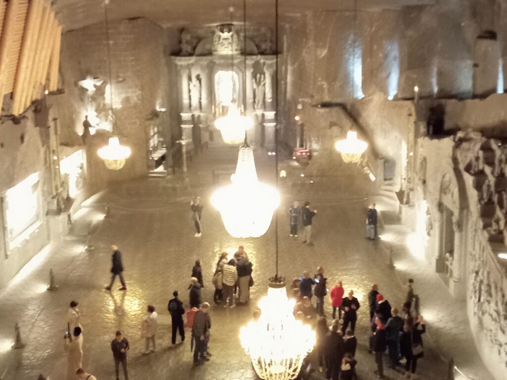 ヴィエリチカ岩塩坑は、13世紀半ばから20世紀半ばまで稼働していた世界有数規模の岩塩採掘場です。複雑に入り組んだ洞窟の一部(約3、5km)が公開されており、岩塩で作られた彫像や採掘の様子を再現した展示、聖堂などを見ることができます。洞窟内は、17、18度に管理されていて過ごしやすいですが、かなり歩くので履き慣れた靴で移動することをオススメします(いきなり階段をたくさん下ります)。
