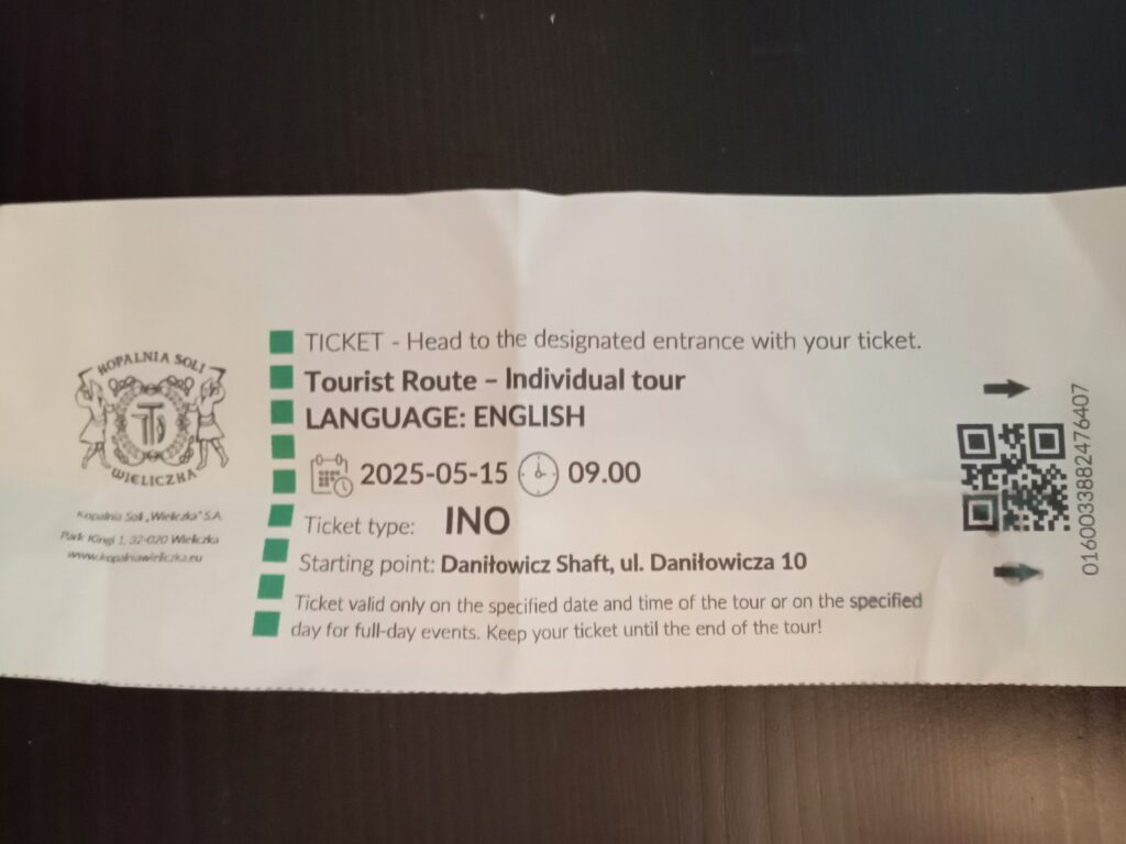 さて、目的地のあるバス停までは、46分の予定。時間がかかるかなと思ったら、逆に早く着いてしまいました。バス停から入口までは1分ほどなので、すぐわかります。ヴィエリチカ岩塩坑はガイド付きツアーでしか見学することができません。いくつか言語がありますが日本語はありませんので、自分は、英語の9:00スタートのチケットを事前に購入していました。