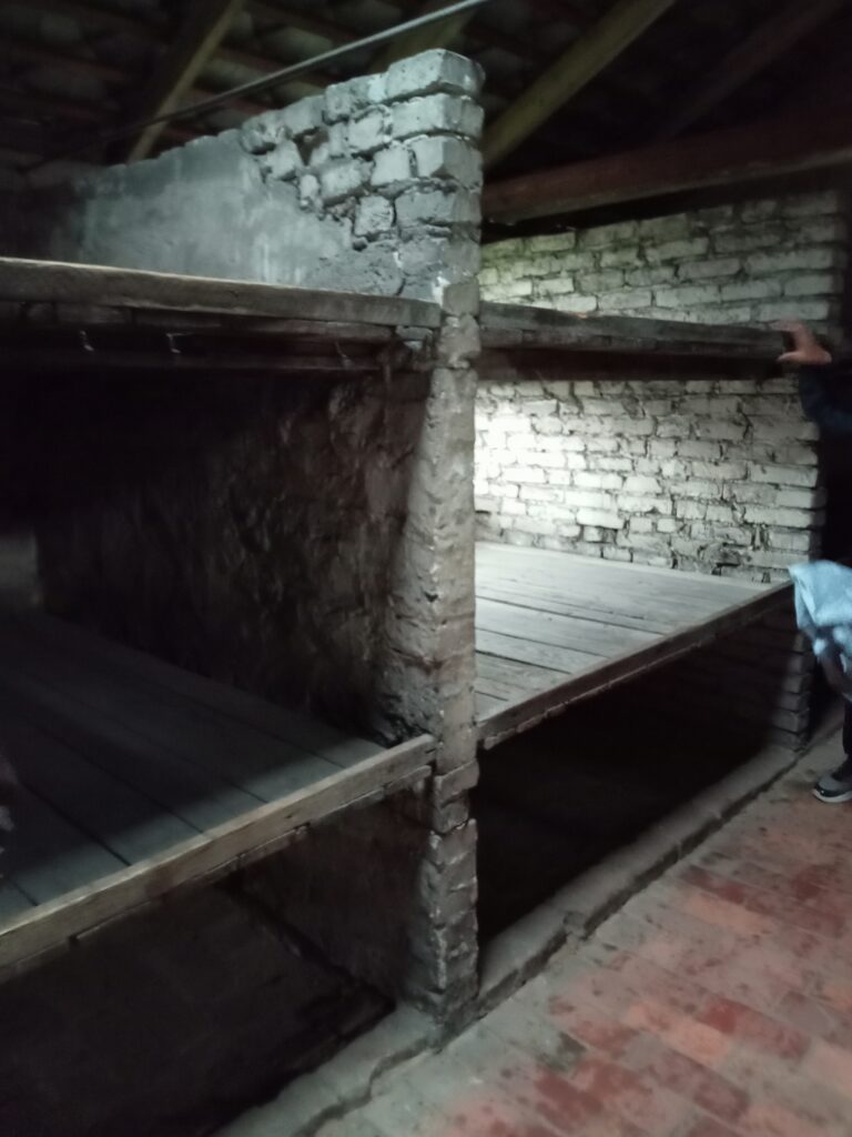 さて、ビルケナウは、アウシュヴィッツよりもさらに大規模な収容所でした。百数十万人の命が奪われたと言われています。「死の門」と呼ばれたゲートから延びる鉄道線や、バラック、人を乗せた貨車、蚕棚のような木造ベッドなどを見ることができます。