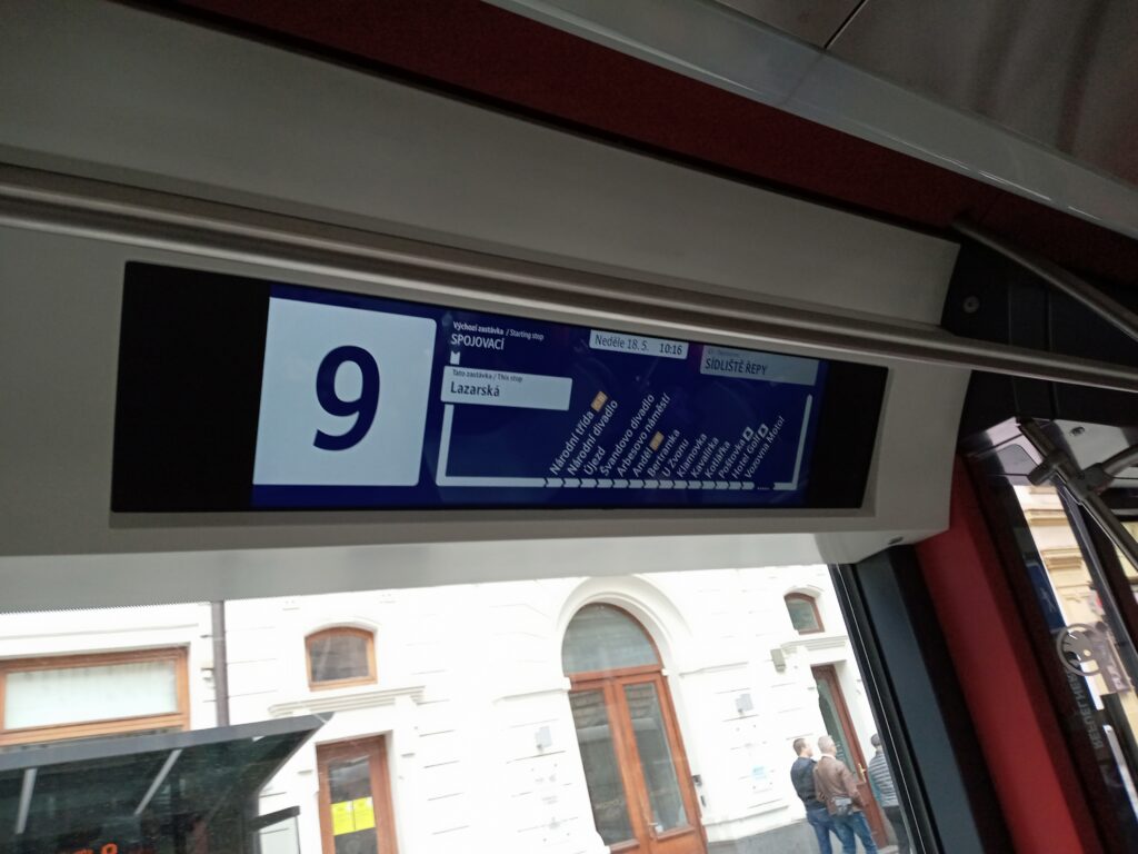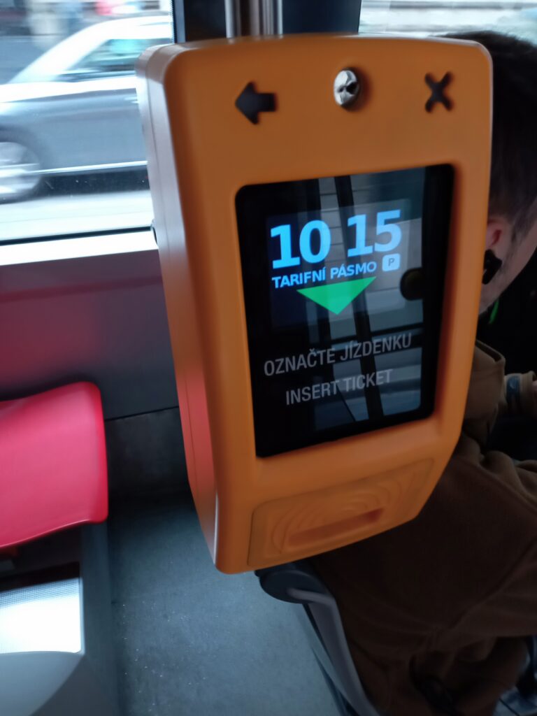 この後は、西側にあるペトシーン公園の方へ行くことにしました。プラハ本駅の自動券売機で30分券を購入し、近くの乗り場からトラムで移動します(改札も忘れずに!)。電光掲示板で行き先を確認して公園麓のところで降ります。