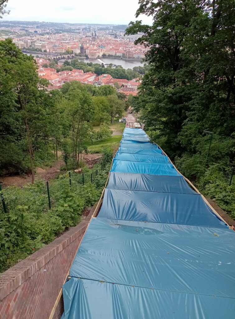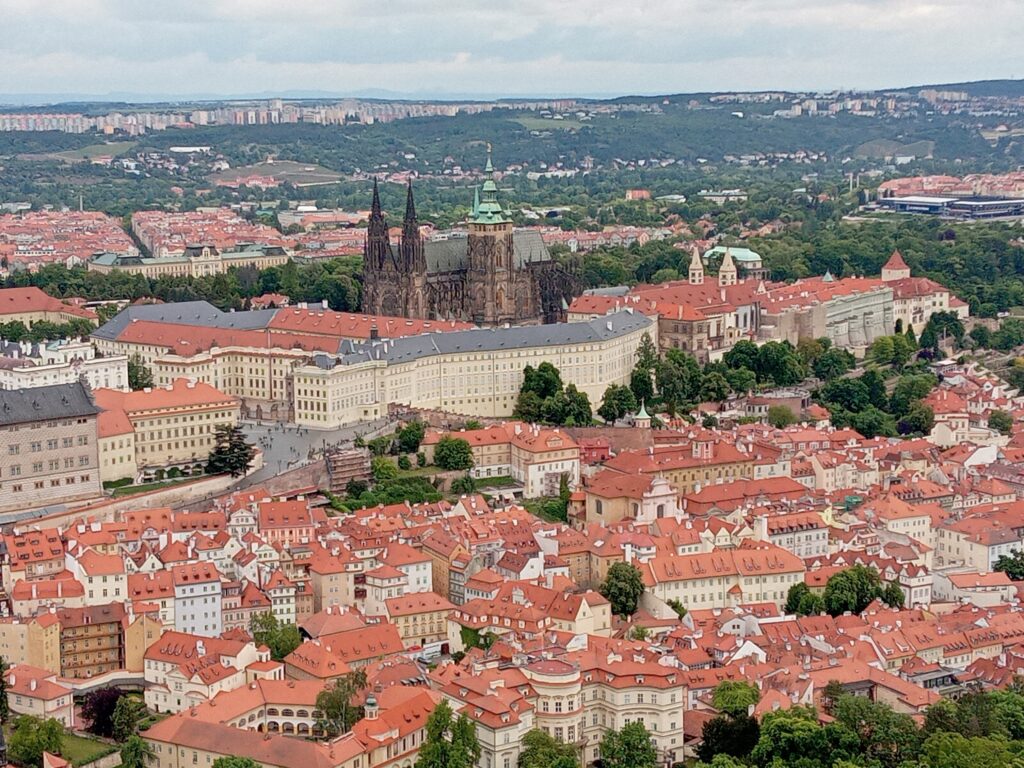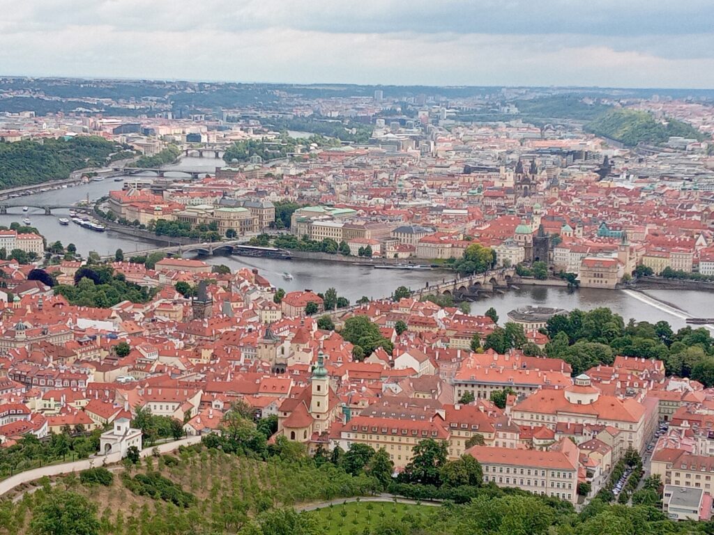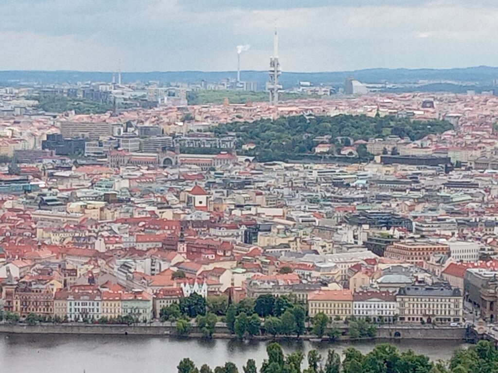 頂上に着くと、エッフェル塔に模して造られた展望台があります。歩いて上がることもできますが、ここはエレベーターで。4人乗りのエレベーターなのでけっこう待ちます。たぶん歩いた方が早いです。上まで行くと、プラハ市街や城や川などを一望できます。来て良かったですが、風が強くて、ちょっと怖かったです。
