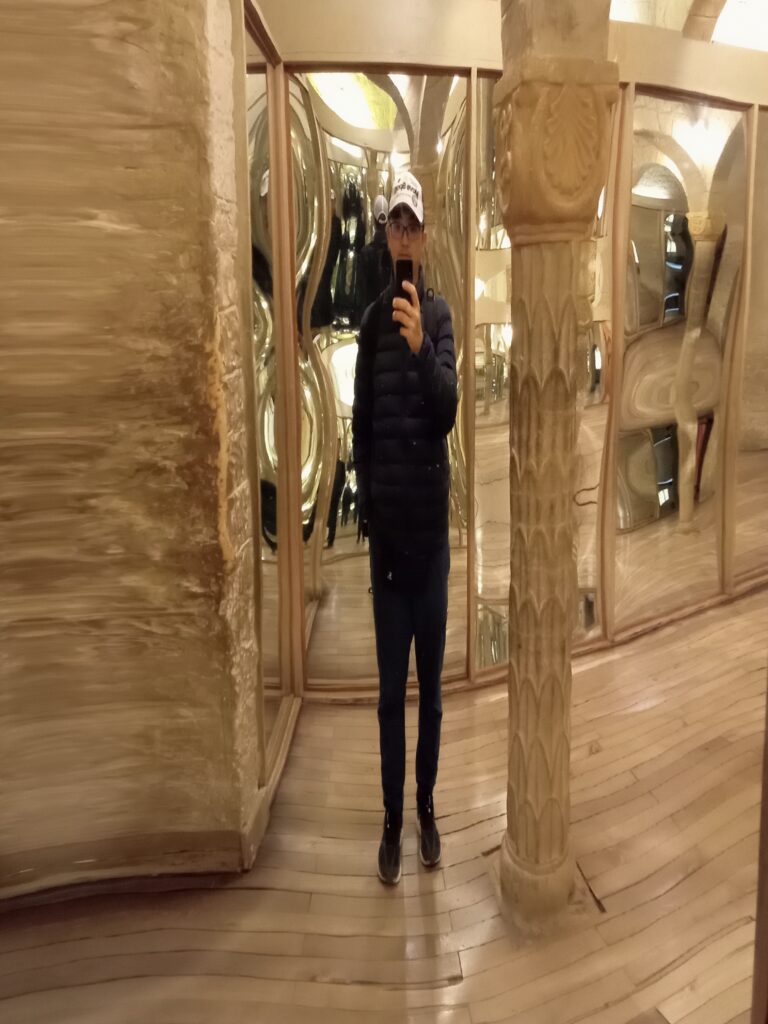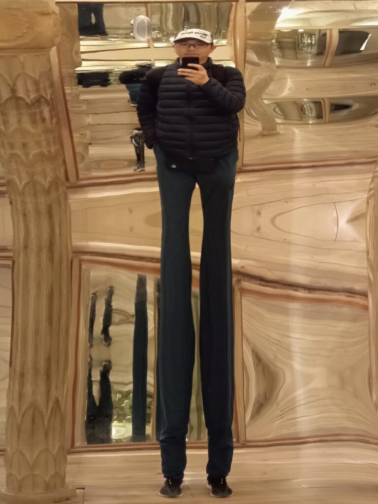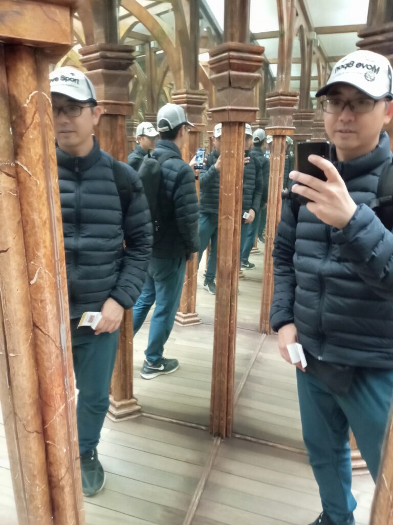 続いては、展望台の横にあった鏡の迷路に。鏡が巡らされた小さな迷路(小さすぎでしたが)と、自分自身がいろんな状態に映る鏡で楽しむことができました。