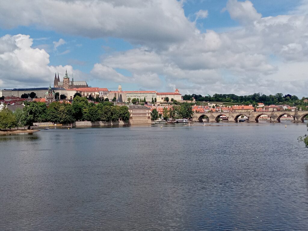 丘を下ったら、帰りは歩きます。カレル橋の一つ南にあるチェコ軍団橋からは、カレル橋とプラハ城を見ることができます。