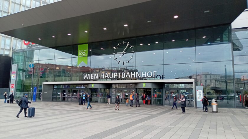 今回もいつのまにか国境を越え、オーストリアへ。ウィーンに近づくにつれ道が混んできたので予定よりも30分ほど遅れてウィーンのバスターミナルに到着しました。バスターミナルは、ウィーン中央駅のすぐ横です。