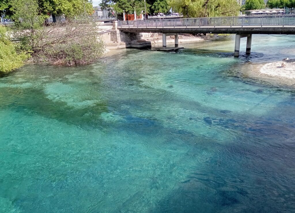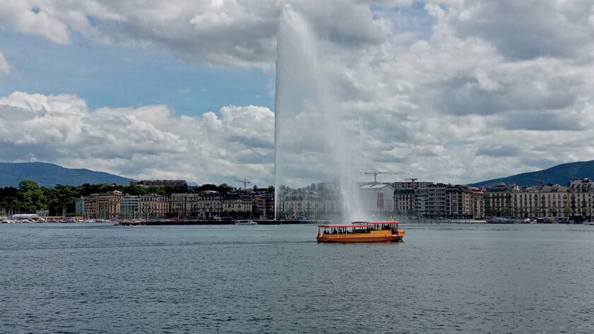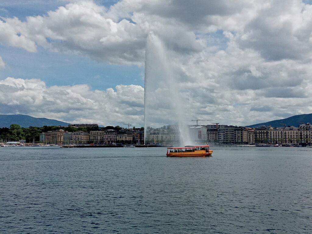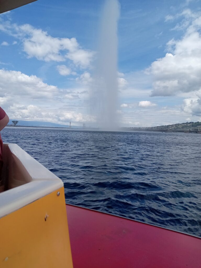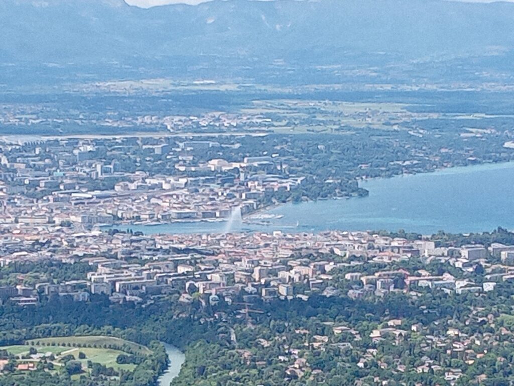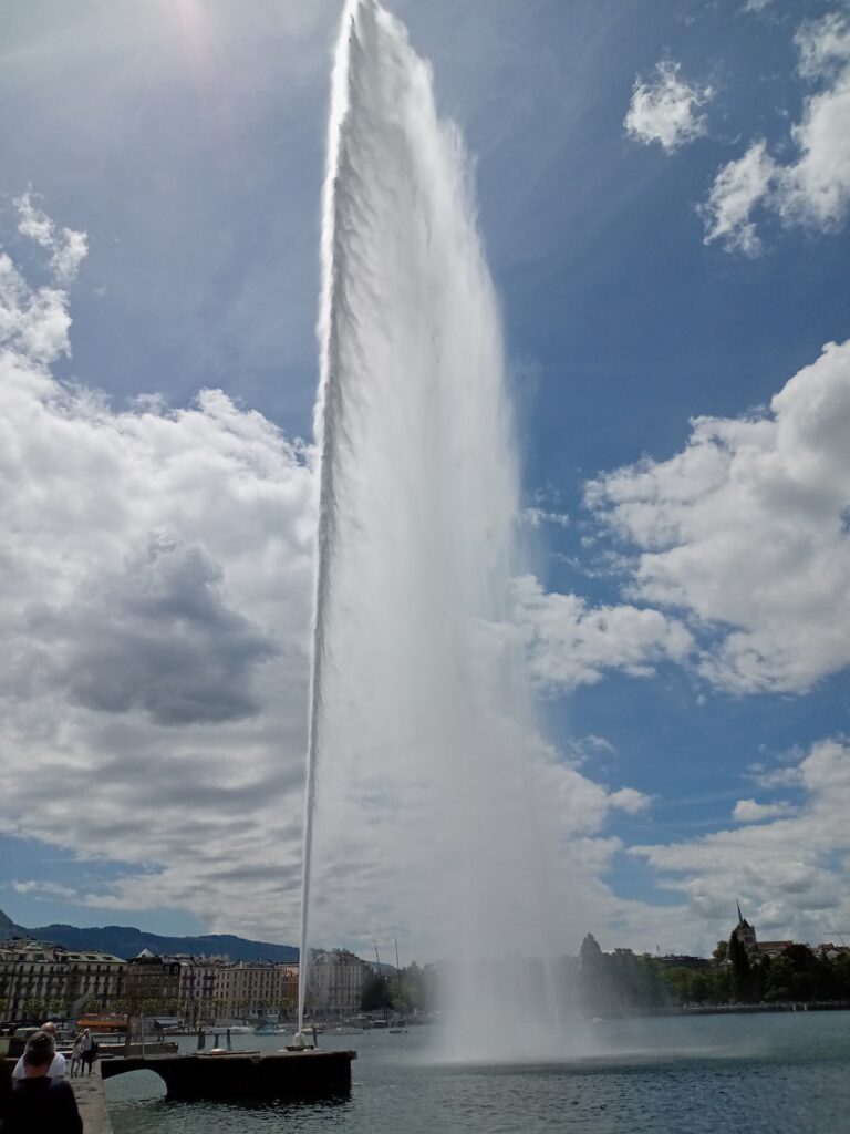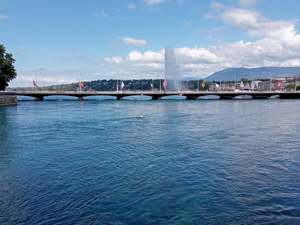 ロープウェーで下ると、再びスイスに戻り、バスに乗ってジュネーヴ市街へ。大噴水に目が行きがちですが、レマン湖の水が綺麗なのにも気付かされます。