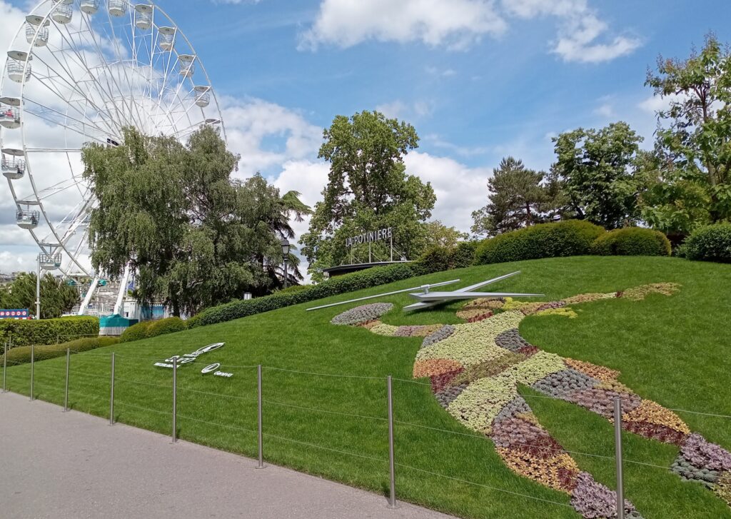 次にこの大噴水を見るために、レマン湖の近くへ。近くのイギリス公園には花時計があり、毎年デザインは異なるそうです。