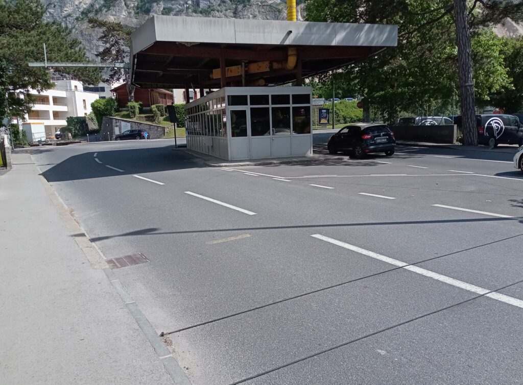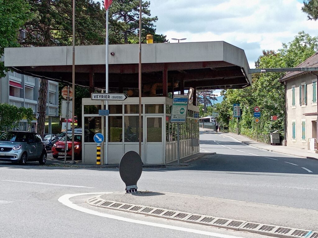 噴水をいろんな角度で見たり、船に乗ったりしましたが、時間が余ります。そこで、バスでフランスとの国境手前のVeyrier Dounaeまで行きました。ここから歩いて1分のところに国境があるので歩いて国境越え(何も手続きはありません)。予定外のフランス入りです。