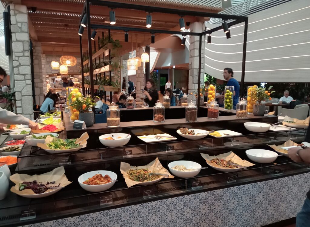 まずは、とにかく広く座席の種類もいろいろ。そして、食べ物のメニューが豊富で、ライブキッチンも複数あり、好みに合わせてたくさん食べることができます。デザートや飲み物もおいしいものが多いです。ビジネスクラスやスターアライアンスのゴールドカード、プライオリティーパスの所有者は、絶対に利用した方が良いです。