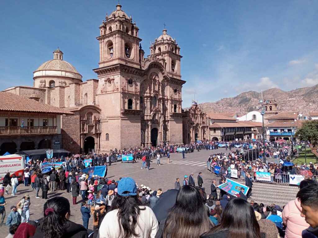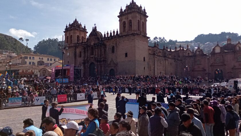 寄るのは後にして、アルマス広場へ。ここは、カテドラルやレストラン・カフェ、民芸品店に囲まれた観光拠点で、前回ツアーで訪れた時にも寄った場所です。ところが、この日は何か盛大な催し物(お祭り?)をやっていたので、とんでもない人が広場を埋めつくしていました。とりあえず、広場の中心やカテドラルなどを写真に収めて退散します。