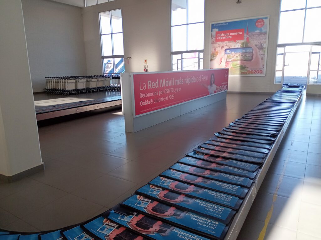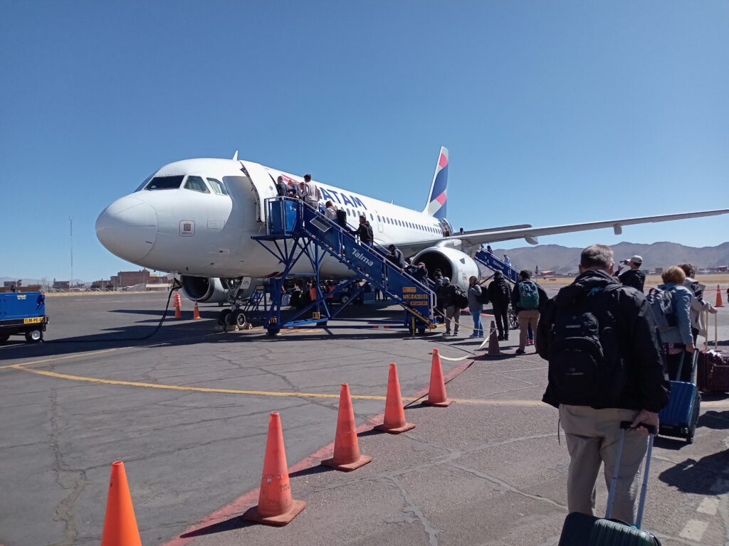 宿をチェックアウトして、フリアカ空港までは、予約していた送迎車で向かいます。乗合だったので、あちこちのホテルに迎えに寄ったこともあり、プーノからは約1時間半かかりました。フリアカ空港は、あまり大きな空港ではありません。ターミナル内には、お店やカフェが数店舗ある程度です。チェックイン、保安検査もほとんど待つことなく終えることができました。