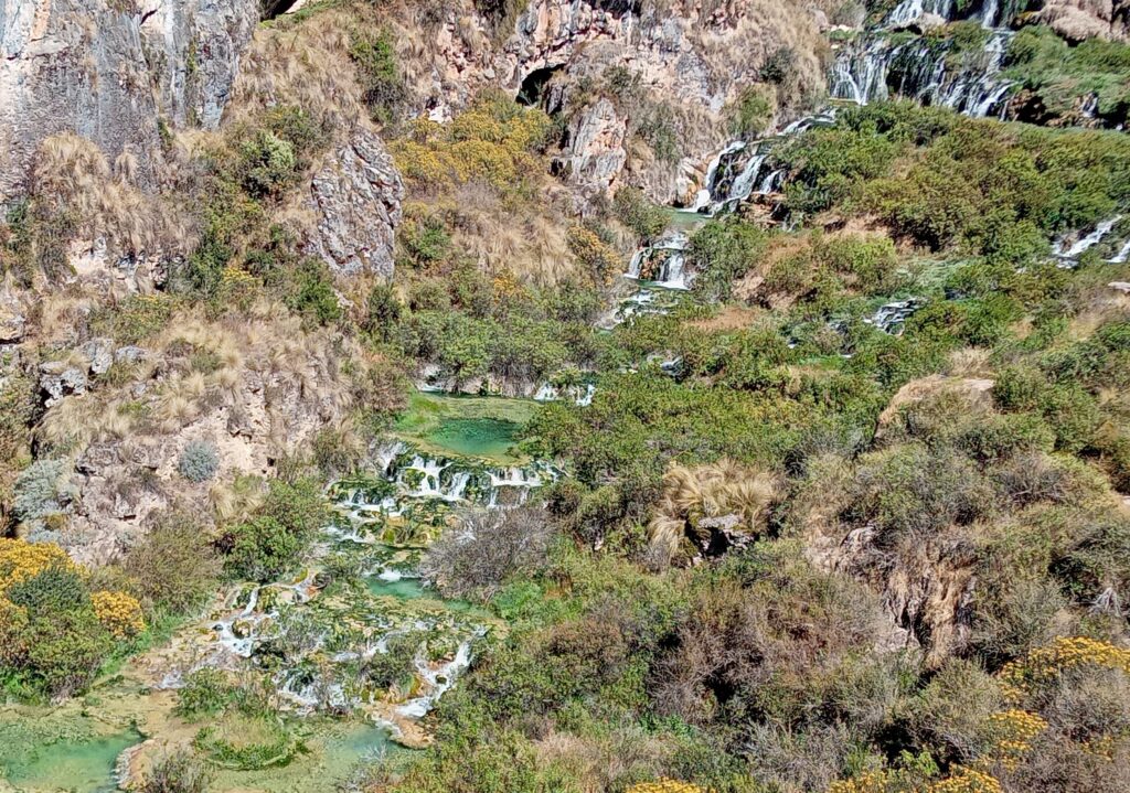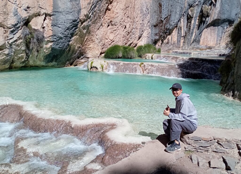 この日は、「アグアス・ターコイズ・ミルプ終日ツアー」に参加します。アヤクチョ郊外にある渓谷に、プール状になった水たまりが重なる景色があり、それを見るためのツアーです。アヤクチョに来たのも、ここを見るためです。