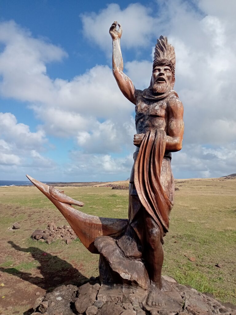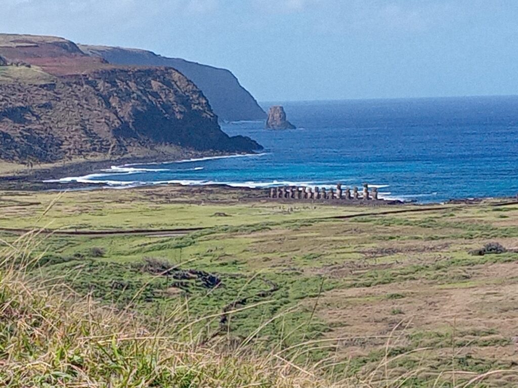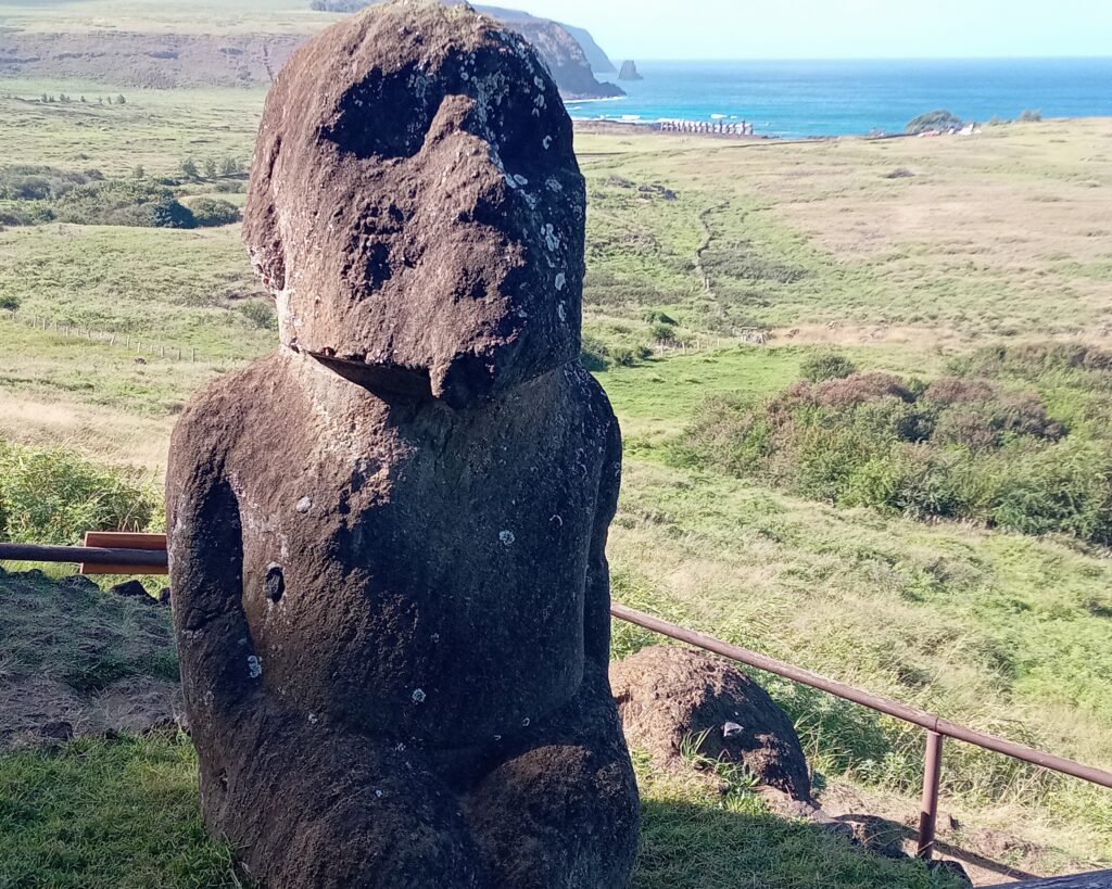 ↑座っているモアイ像の奥にはこの後行くアフ・トンガリキが
