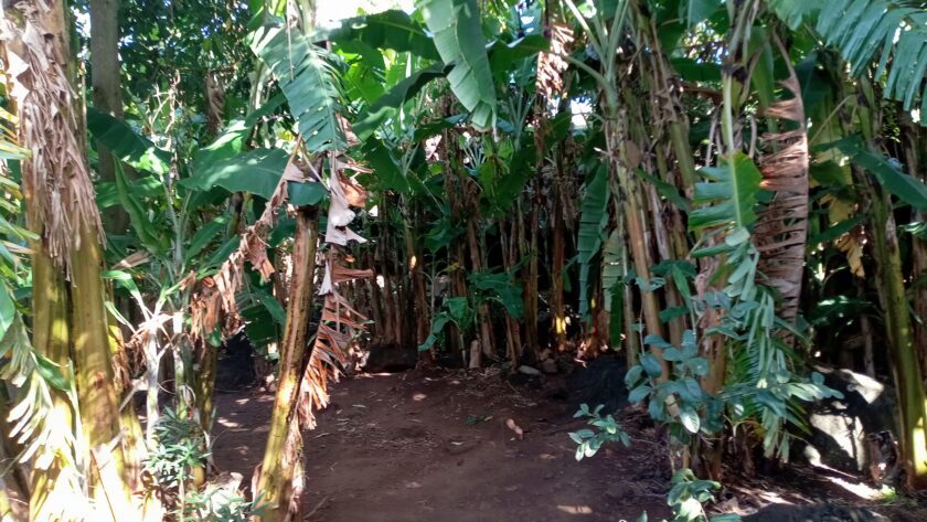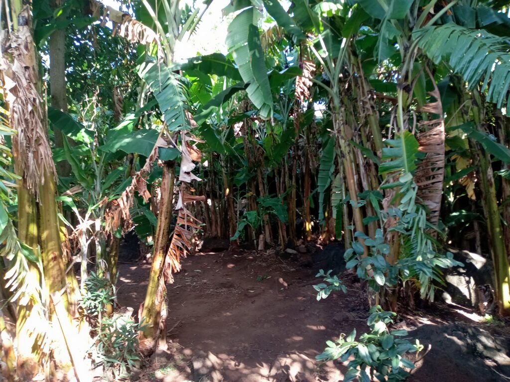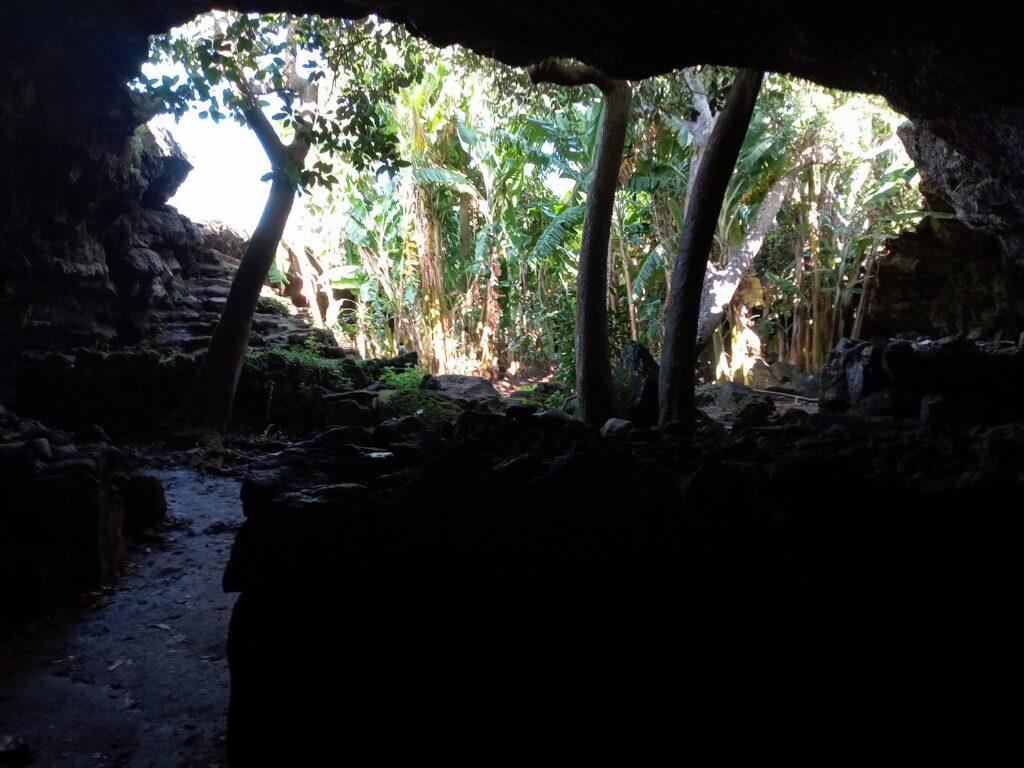 初めに向かったのは、「アナ・テ・パフ」。ここは、イースター島最大の洞窟と言われている場所です。全長800mもあるこの洞窟は、モアイ倒し戦争や、西洋人来襲時の隠れ家にもなったらしい場所でもあります。開けているところには、農作物が植えられ、バナナやグァバなどが今も見られます。