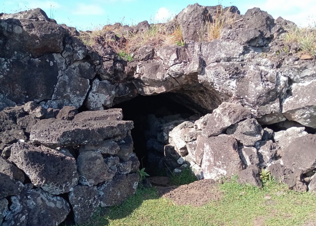 次は、「アナ・テ・ポラ」。ここにも洞窟があり、洞窟の文化的重要性やラパヌイ族の古代の信仰と習慣について説明を受けました。