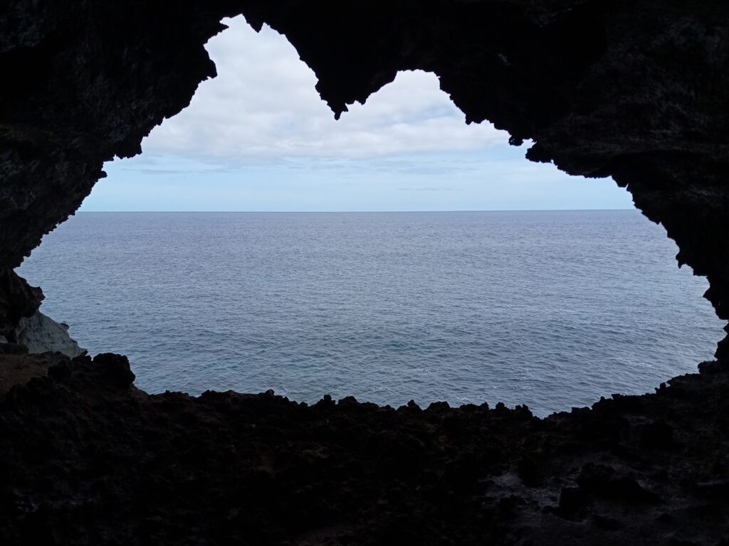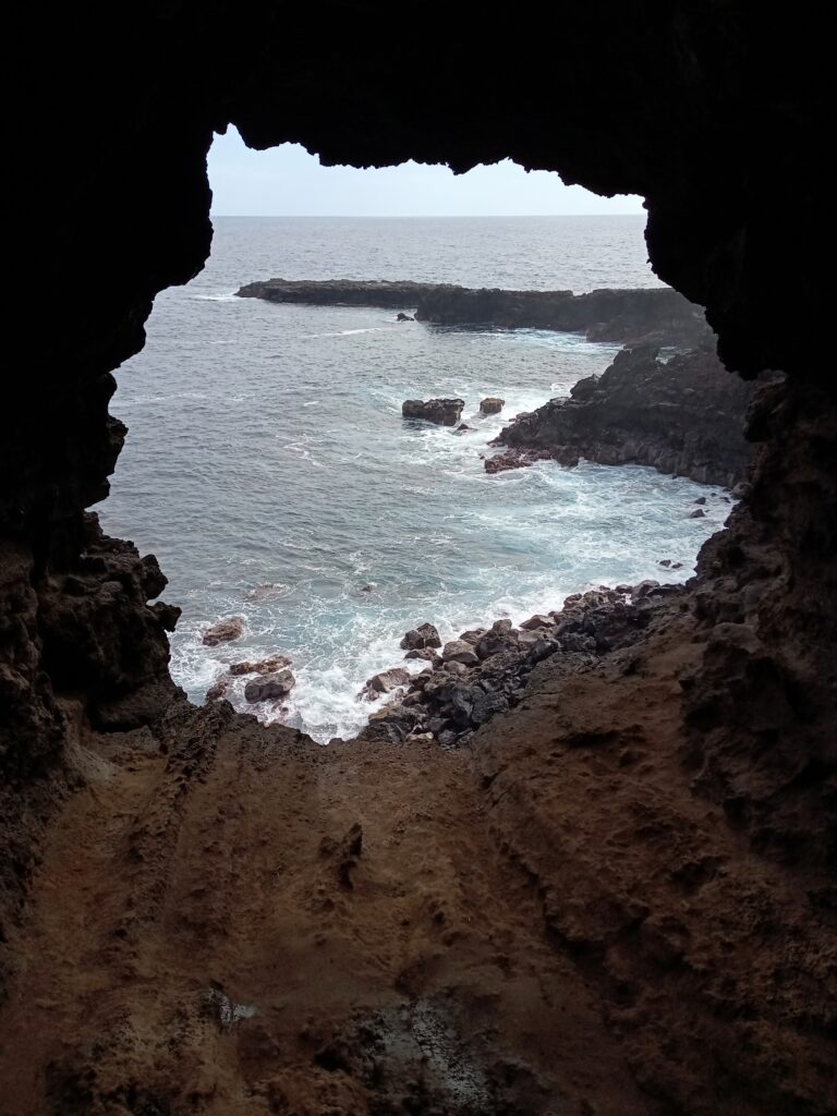 そして、最後に向かったのは、「アナ・カケンバ」。ここには、洞窟があり、小さな入口から入ると、海につながる(見える)空洞があります。断崖絶壁、果てしなく続く海が広がる景色を眺めることができます。