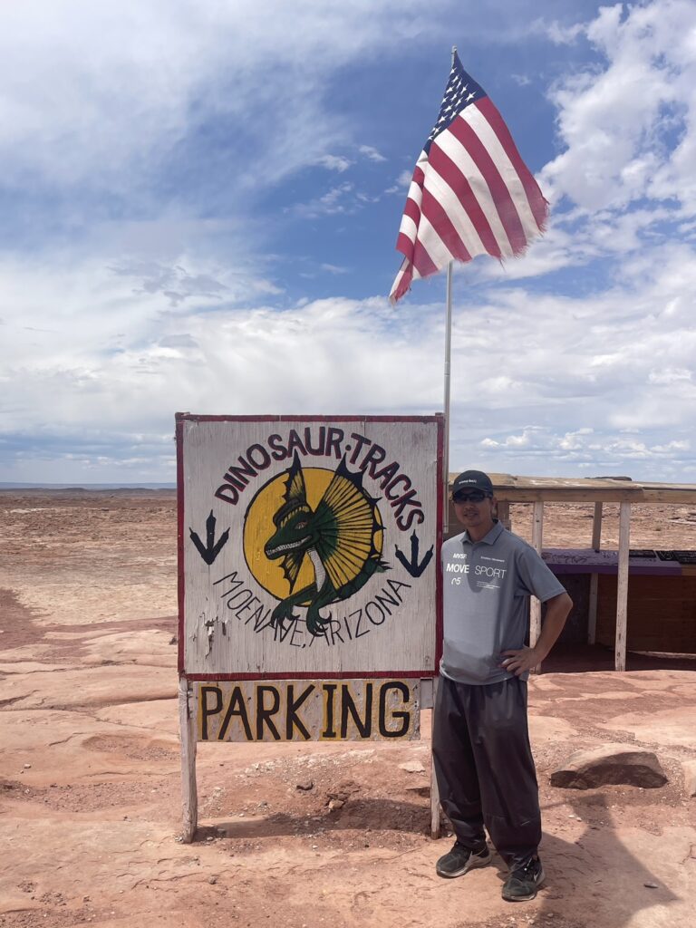 続いては、恐竜の足跡がたくさん見られるポイント。たしかにたくさん見れましたが、詳しくないとあまり恐竜の名前を言われても……という感じでした。暑くてスマホのカメラは起動しなくなるし…。