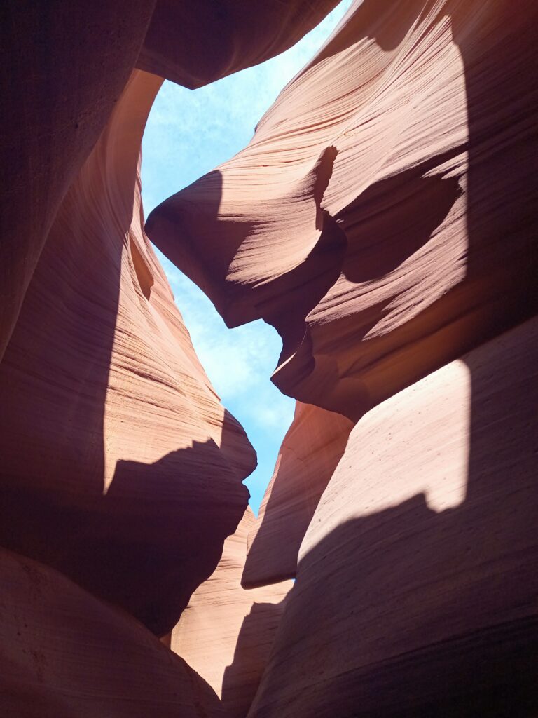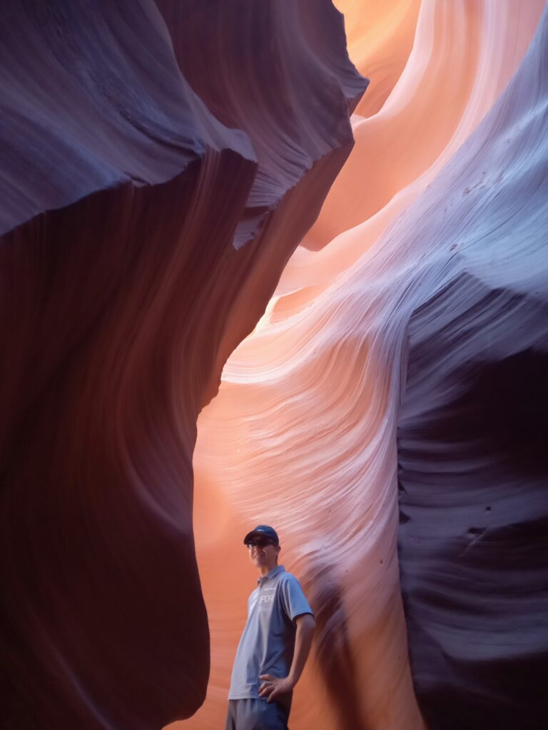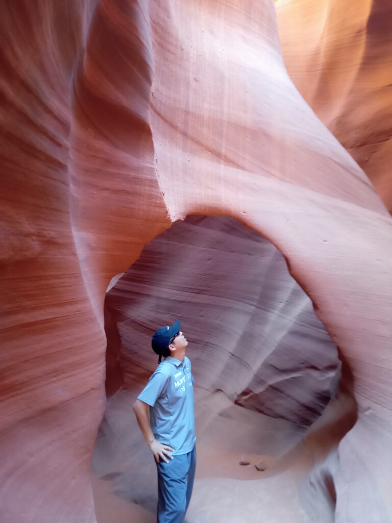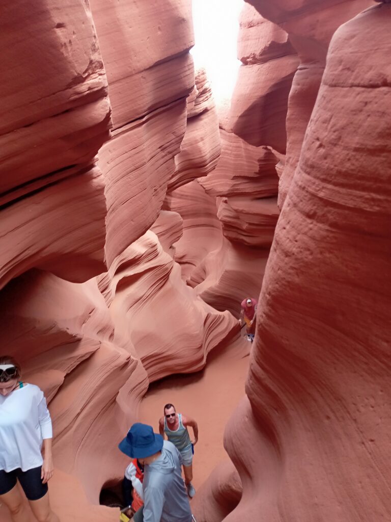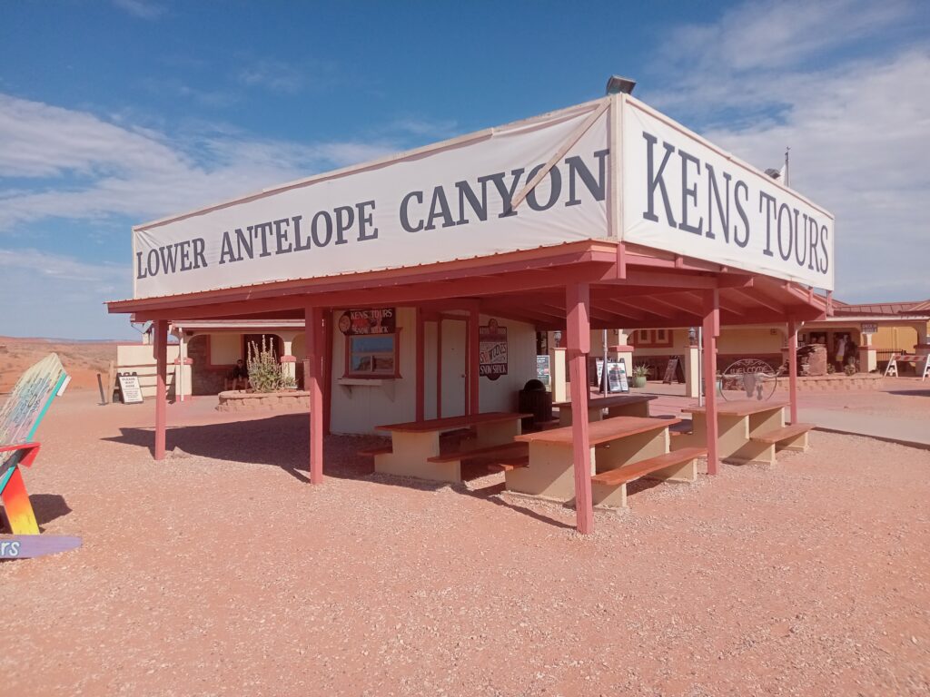 ホースシューベンドを後にして、今回のツアーの中で楽しみにしていた(ロウワー)アンテロープ・キャニオンに向かいました。ナバホの言葉で「水が岩を流れる場所」という意味を表す自然がつくり出した絶景が見られる場所です。
