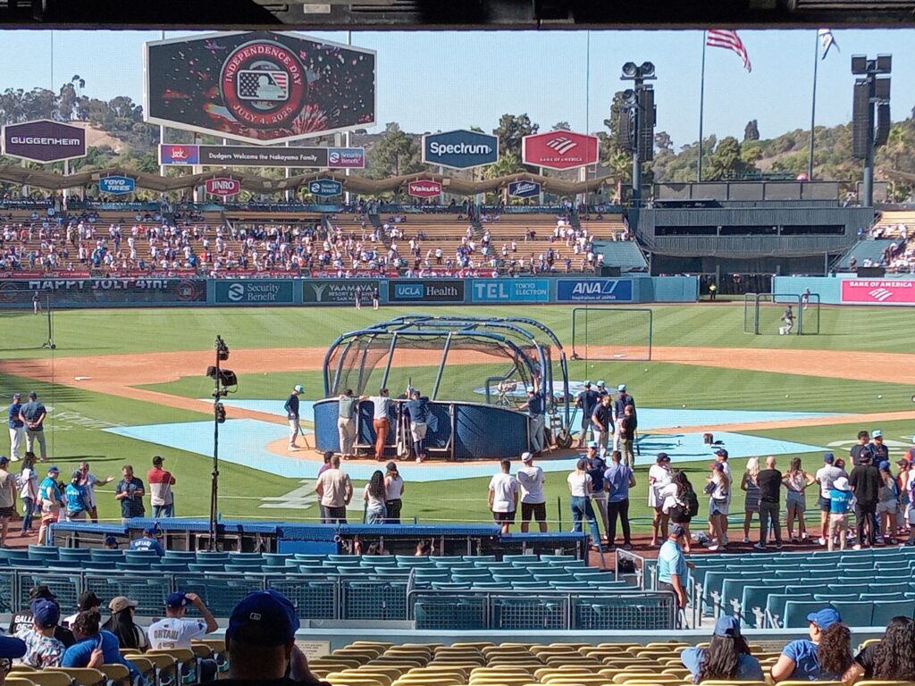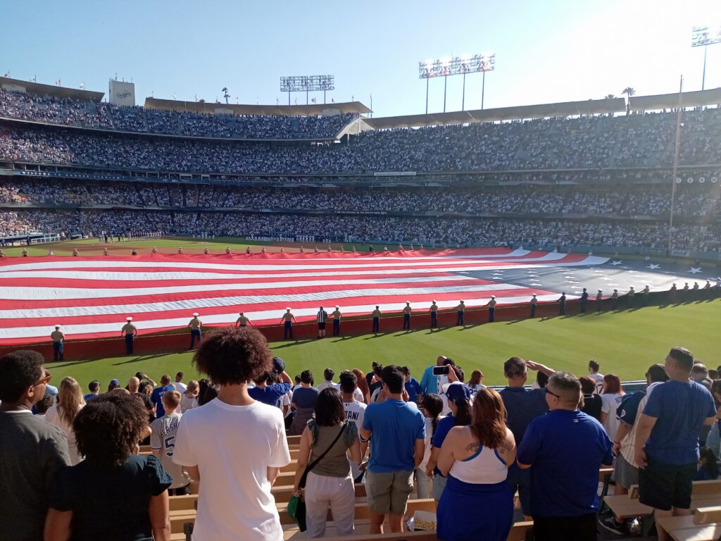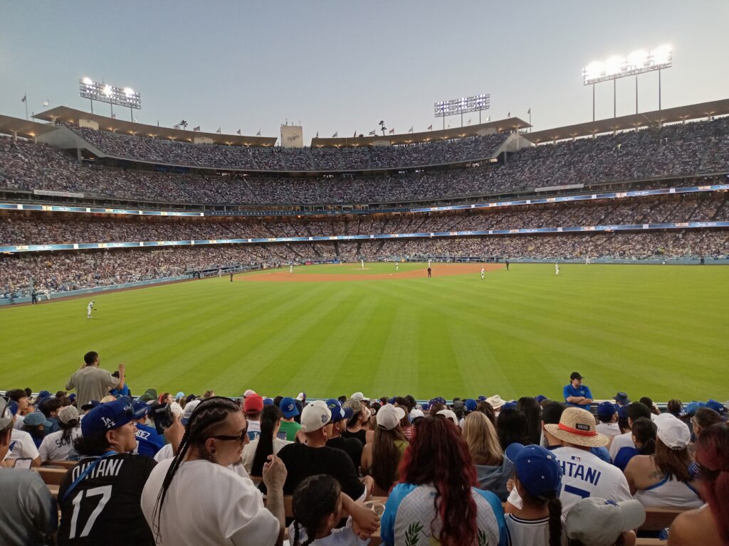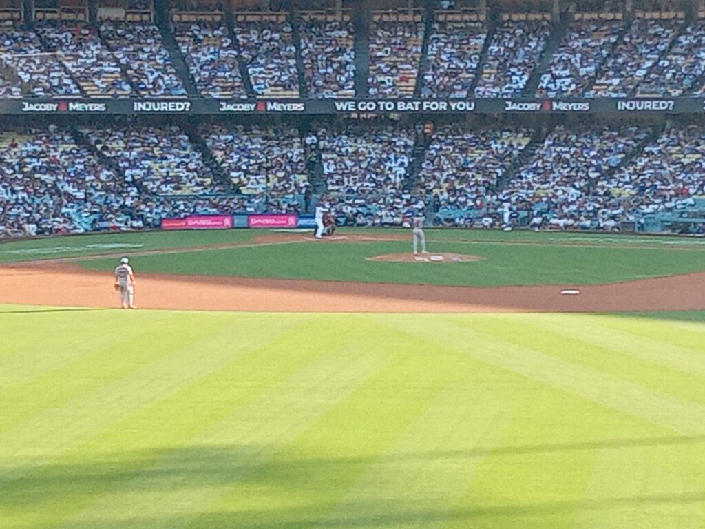 そして、ドジャースタジアムに到着。試合開始までに席(この日は右中間スタンド)を確認し、いろいろ回ってみます。食事も済ませ、国歌斉唱があり、いよいよプレイボールです。