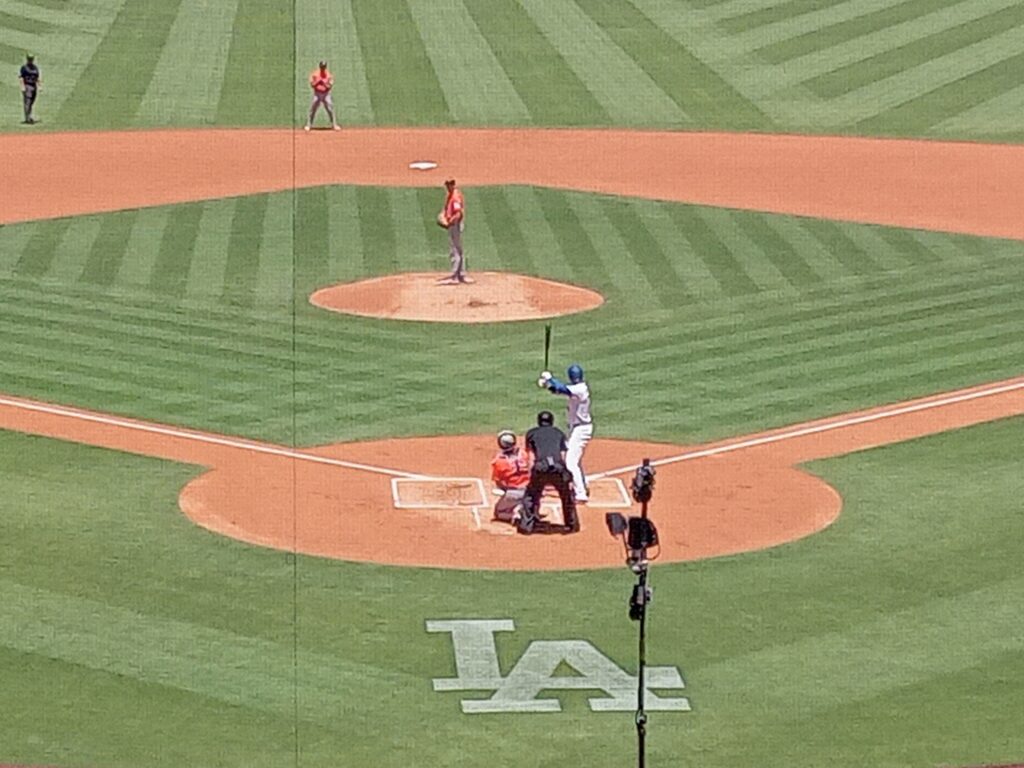 予定時刻に試合開始。試合は、中盤までは1-1の投手戦となり、前回の観戦とは異なり緊迫した試合となっていましたが、中盤以降アストロズがホームラン3本が飛び出し結局1-5でドジャースは敗れました。大谷選手も4打数無安打と快音は聞かれず、ファンからはため息が漏れていました。