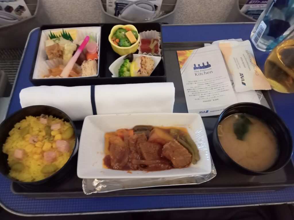 高速バスで移動し、新千歳空港に到着。羽田へは、ANA便を利用しますが、プレミアムクラスが空いていたので、余っていたポイントを使ってアップグレード。久々に、国内線の機内食をいただいて羽田へと向かいました。