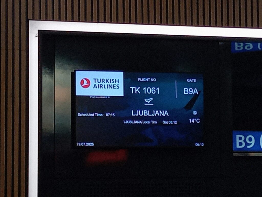 そして、日付の変わった7:15にイスタンブールを発って、2時間ちょっとでスロベニアのリュブリャーナへと向かいます。