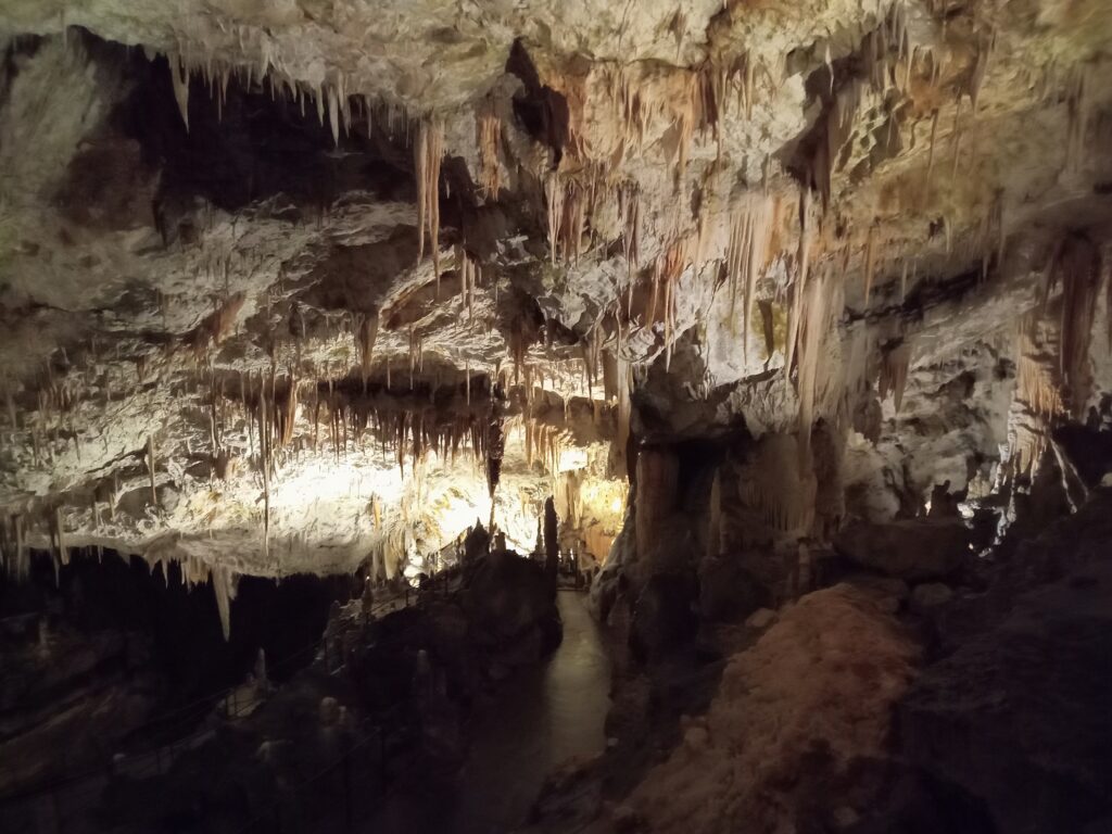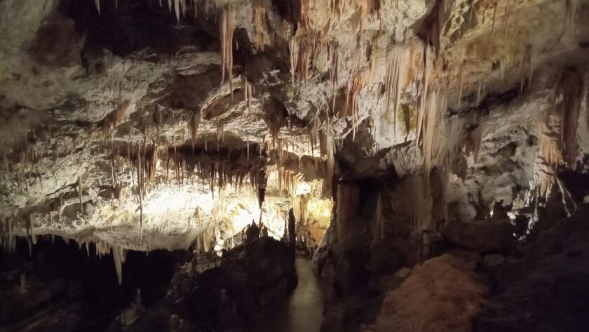 下車後は、ガイドに解説してもらいながら歩きます。動物や人、食べ物のように見える鍾乳石を探したり、美しい氷柱を眺めたりしながら進んでいきます。また、洞窟内では、ドラゴンの赤ちゃんとも呼ばれたホライモリを見ることもできます。かなり広い鍾乳洞は、歩く距離が約1.8kmほどあり、高低もあるのでけっこう疲れるかもしれません。