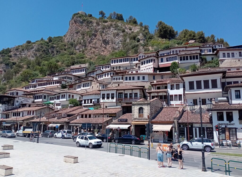 ティラナ観光後、バスに乗りベラートを目指します。ベラートは、アルバニア中南部の都市で、ベラト州の州都です。オスマン帝国時代の町並みが保存されており、2005年に世界遺産に登録されていた「ジロカストラの博物館都市」の拡大登録という形で、2008年に世界遺産リストに加えられました。また、「千の窓を持つ街」とよばれ、絵になる街としても有名です。