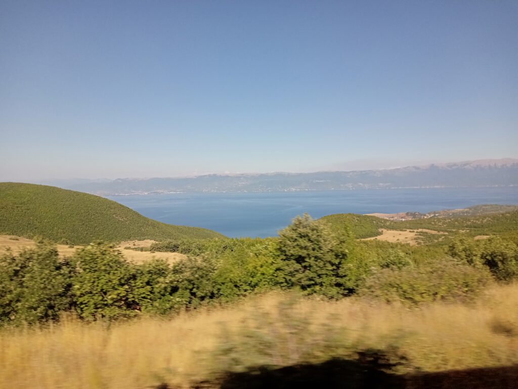 そして、ベラートを出て、最後の訪問国北マケドニアに向かいます。国境付近で少し渋滞していましたが、手続きを無事に終え入国。目の前には、ヨーロッパ最古の湖の一つで、国境の湖でもあるきれいなオフリド湖が見えてきます。