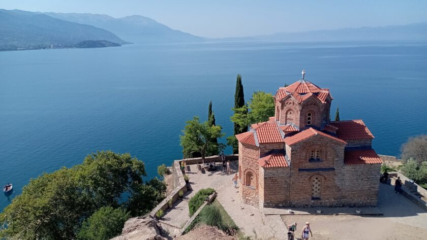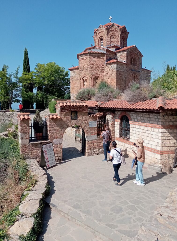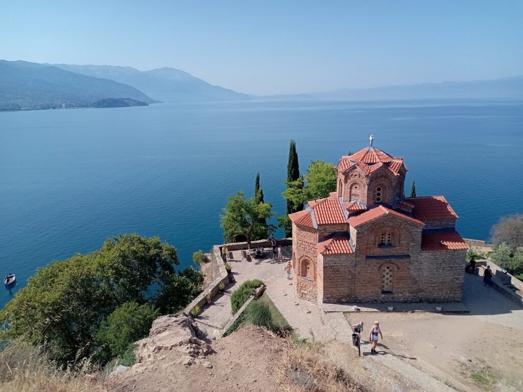 上の写真の聖ヨハネ・カネヨ教会から少し登ったところからは、教会とオフリド湖を見下ろす素敵な写真スポットがあります。