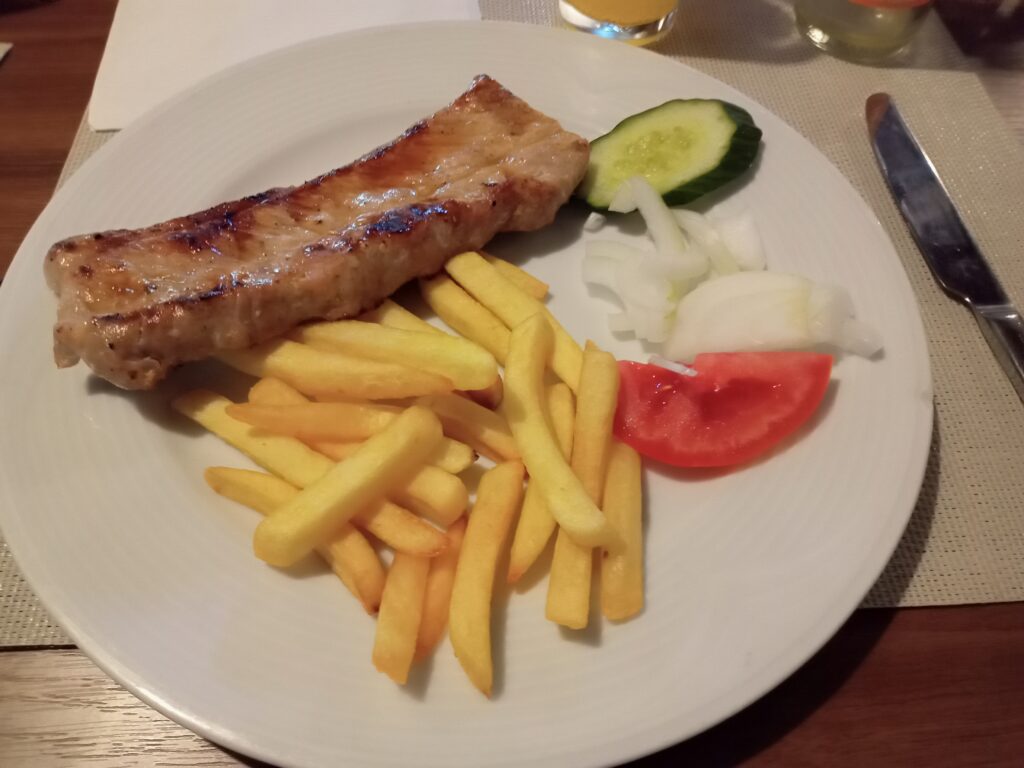 昼食は市街地にあるレストランで、久々にがっつりお肉をいただきました。