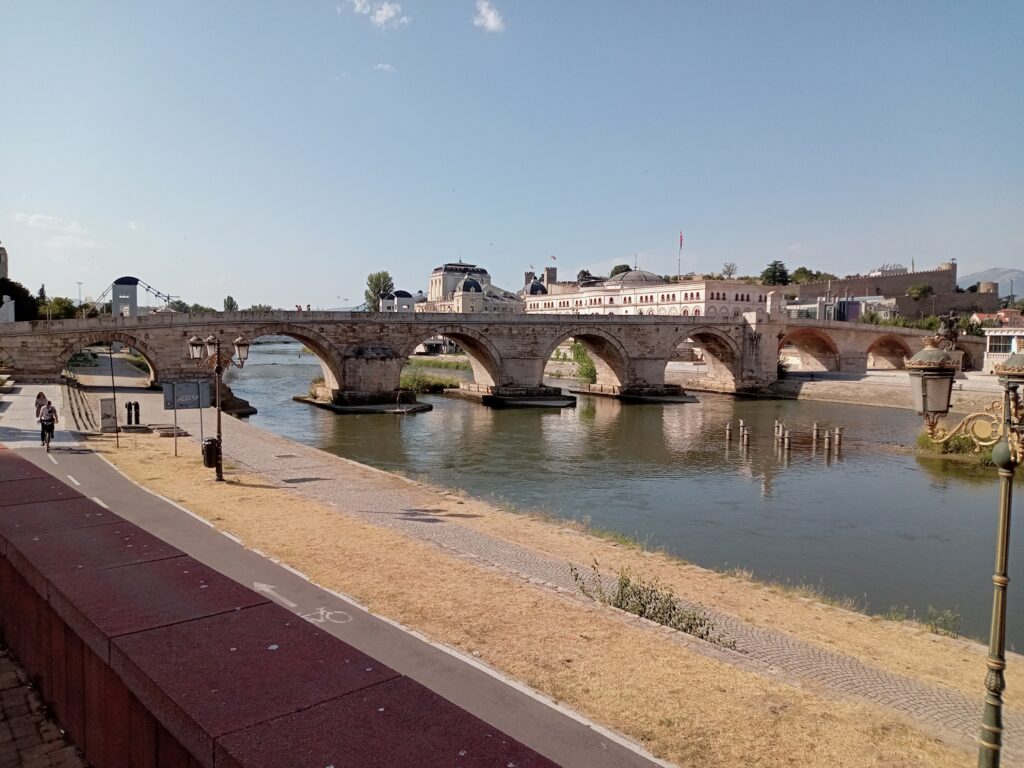ヴァルダル川に向かって進んだところにかけられている石の橋は、スコピエの観光名所です。この旧市街と新市街を結ぶ石橋は、オスマン帝国時代の15世紀に作られた重厚なもので、スコピエのランドマークです。