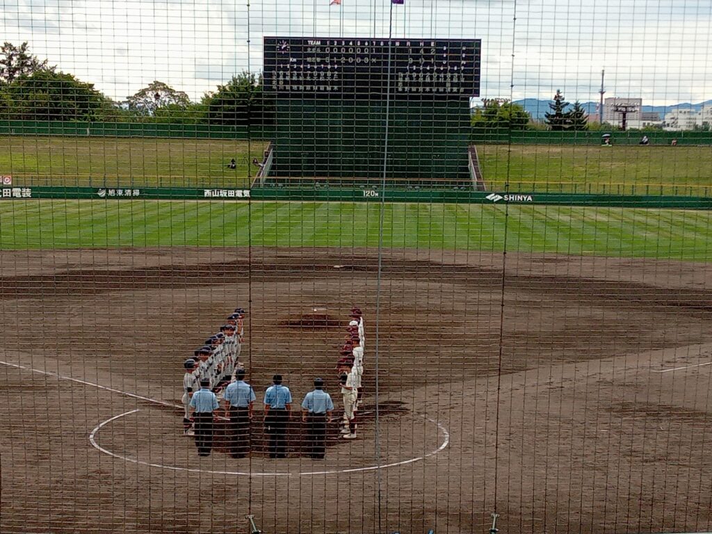 帰国後、6か国周遊ツアーに出かける前には、旭川市のスタルヒン球場で行われていた高校野球北北海道大会の試合を観戦しました。北見北斗高校や紋別高校には、少年野球指導時代に関わった子どもたちがいたので、応援もかねての観戦です。