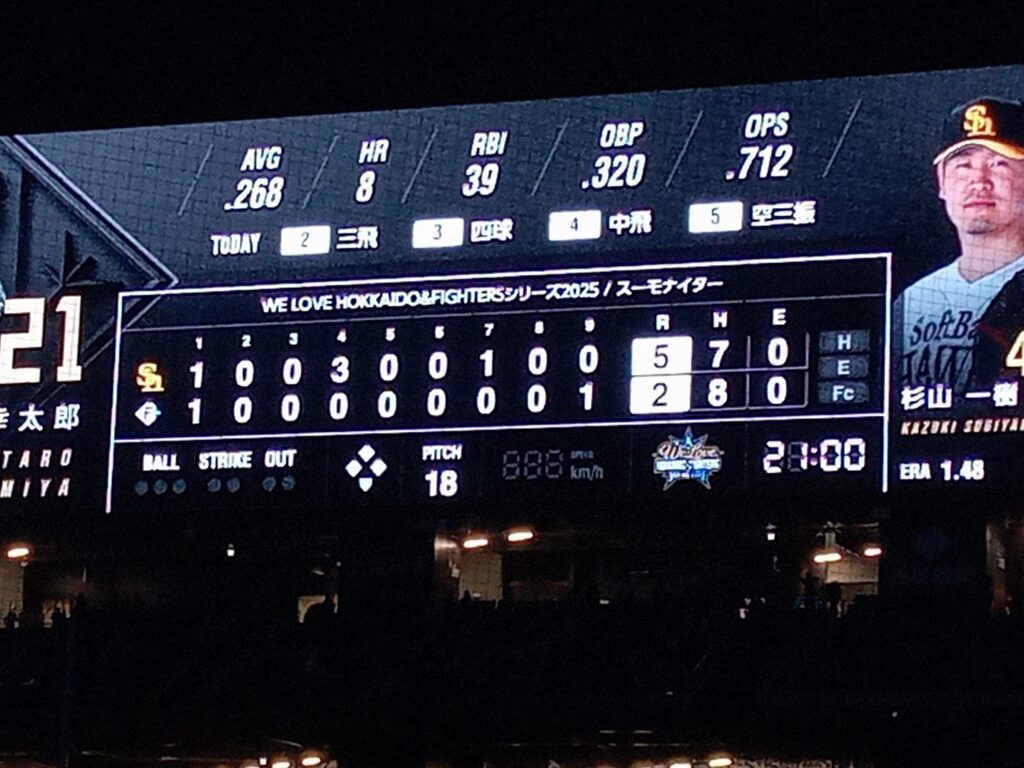 6ヶ国周遊から帰ってきてすぐに、エスコンフィールドで行われたソフトバンクvs日本ハムの首位攻防戦を観戦しました。開幕直後は最下位に沈んでいたソフトバンクでしたが、交流戦の優勝を皮切りに7月は快進撃で首位日本ハムに1ゲーム差に迫っての首位攻防初戦でした。