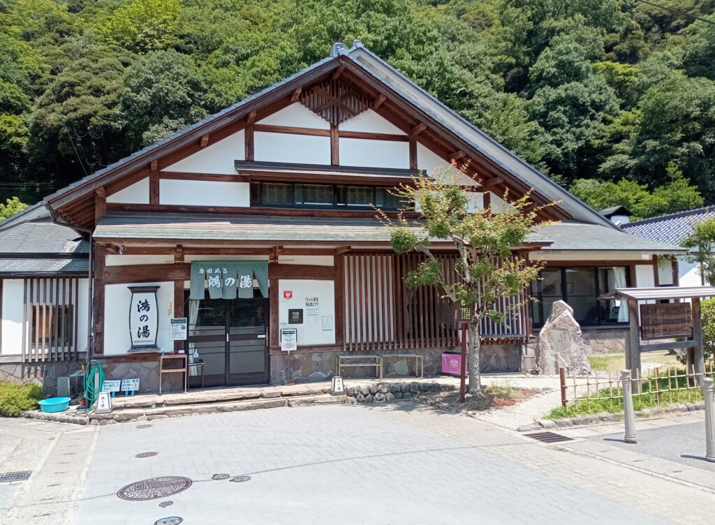 次に向かったのは、7つの外湯の内、最も西側にある「鴻の湯」。コウノトリが足の傷を癒したという言い伝えがあり、城崎温泉の中で最も古い歴史をもつ湯です。庭園露天風呂が名物となっています。