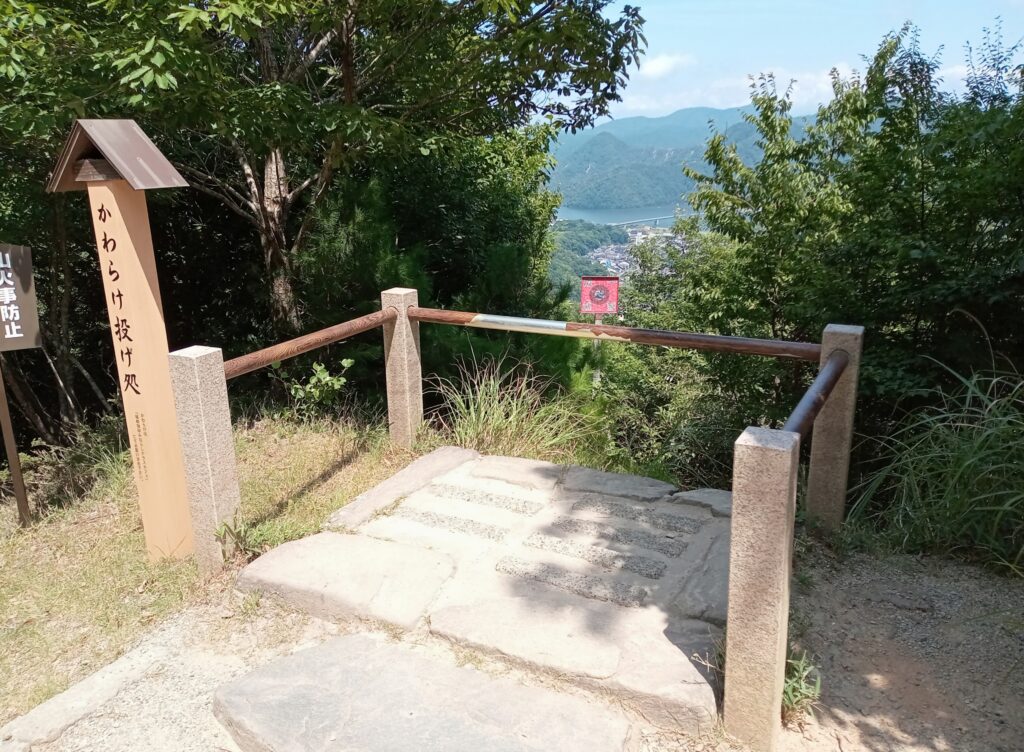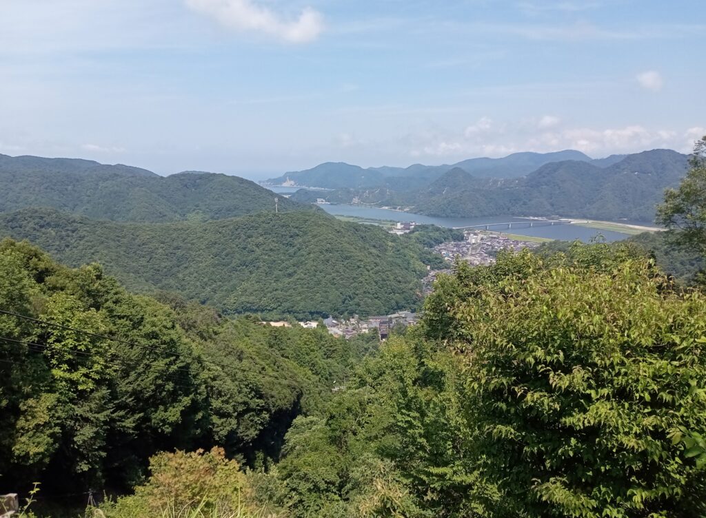 山頂からは、温泉街や日本海などを見渡すことができます。また、山頂にはかわらけ投げ処や奥の院、カフェなど、ゆっくり滞在できるようになっています。自分は景色メインだったので、周りをちょっと見たら、すぐに折り返します。